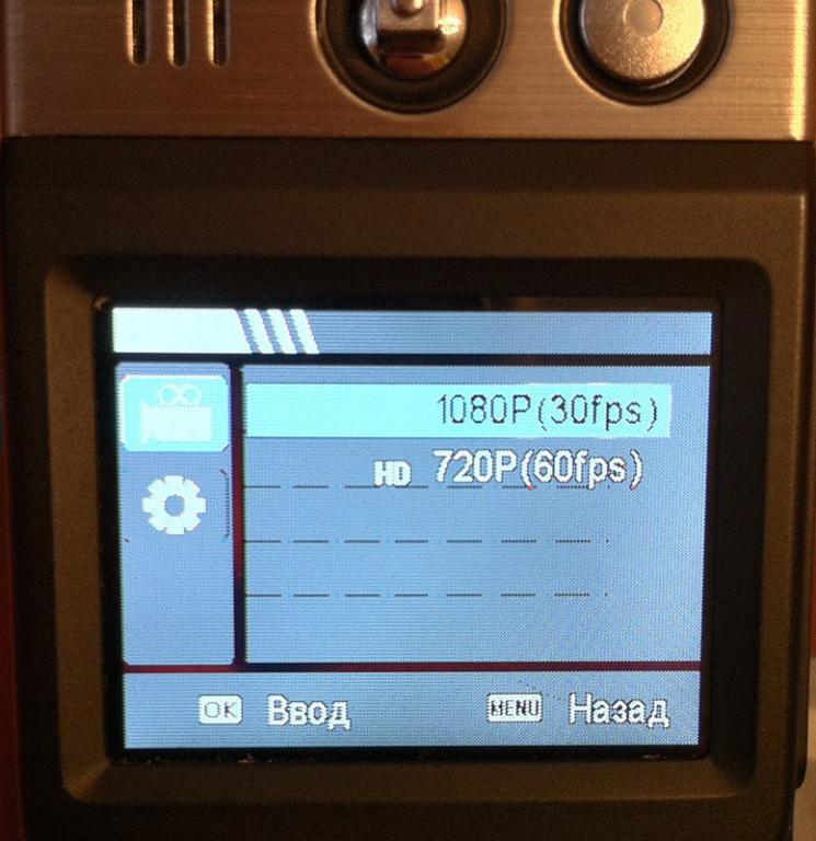 Минимизация коснулась и опции выбора разрешения видео. Очевидно, что в последнее время народ просёк прелесть записи в качестве HD и Full HD, и уже не рассматривает в большинстве случаев другие варианты как приемлемые. Да и менталитет у нас такой, что если у тебя регистратор не снимает в ХД качестве, то у тебя, вроде как недорегистратор.