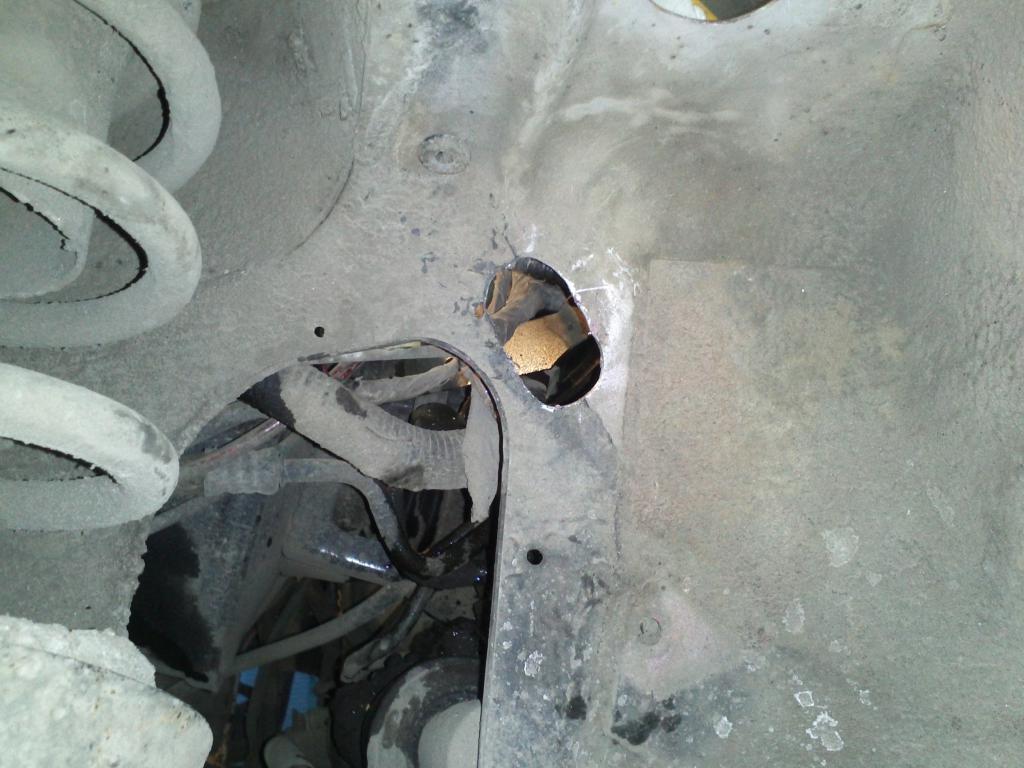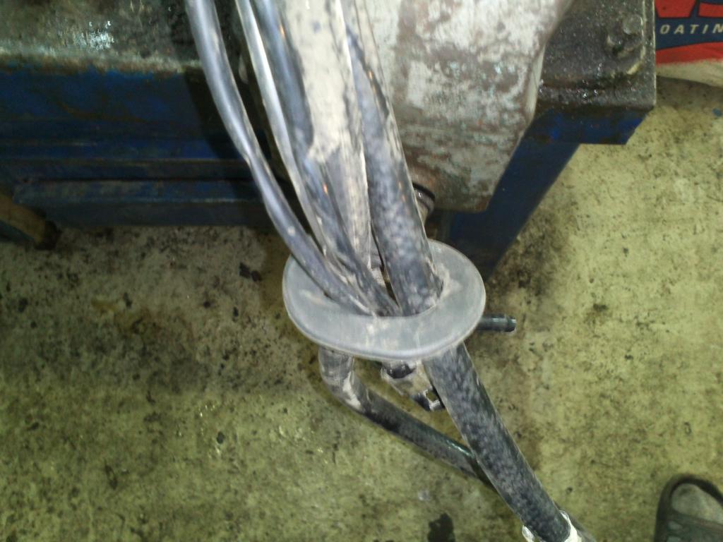 Отвервствие в кузове пришлось расточить и подобрать резинку, через которую проходят все шланги и провода.