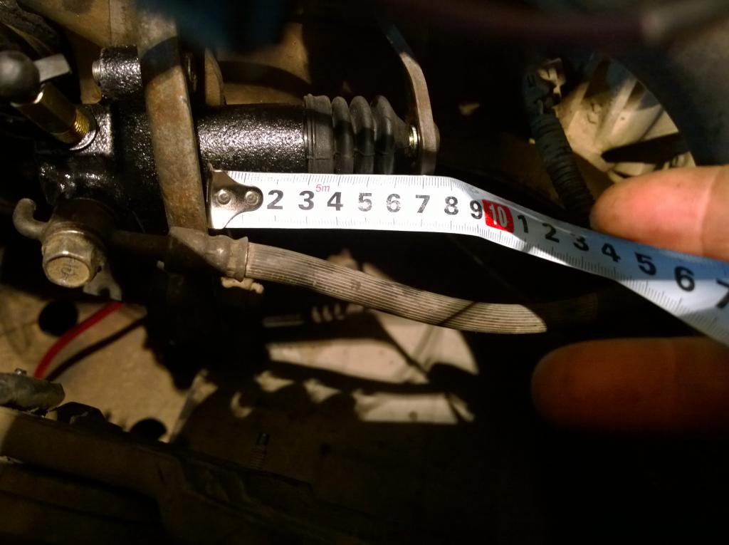 Когда отжимной рычаг сломан, то при отпущенной педали, рычаг будет отодвинут от цилиндра так, как будто она нажата. Расстояние между цилиндром и рычагом будет 4-6 см. При исправном рычаге это расстояние составляет 1,5-2 см.