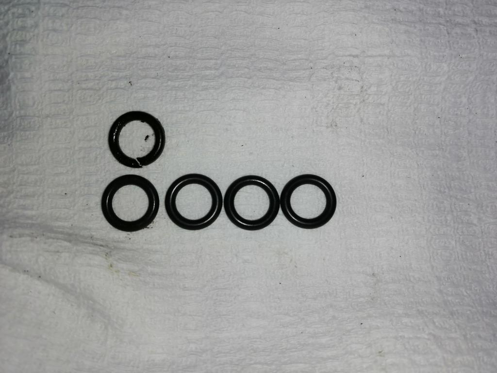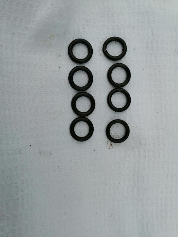 Народ привет! Ну в общем я разобрался с нижними уплотнительными кольцами форсунок. В итоге купил оригиналы в автодоке, чегото там рублей 230 за штуку. Ибо уже не знал чем заменить, нигде не нашёл отзывов об заменителях с хорошими отзывами, потому решил и брать оригиналы как писали мне выше. Верхний ряд колец на фото- это родные которые стояли, нижний ряд - новые. Плюс на фотках с линейкой хотел показать размеры наружного и внутреннего диаметра колец.
