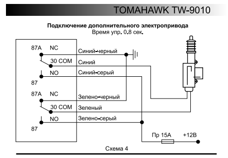 Не, я по другой схеме подключился. По "негативной". Там сине-серый и зелёно-серый между собой, и на массу замкнуты, а зелёно-чёрный и сине-чёрный просто никуда не подключены. А зелёный и синий на - контакты актуатора в двери, которые к ЦЗ идут. Предохранители проверил и прозвонил в первую очередь. Все нормально. Но ни + ни - НЕ приходят на зелёный и синий, хотя, по идее, что-то туда приходить должно.