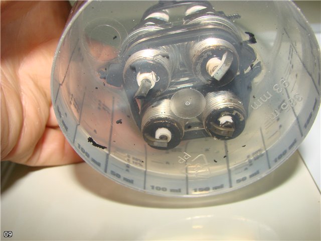 так вот берем пищевую лимонную кислоту подходящую емкость высыпаем 15-20 гр кислоты и заливаем горячей водой так чтобы ото дна емкости было 2-3 см тоесть покрывало только резьбовую часть свечей ! Свечи устанавливаем вертикально ..к примеру невсегда удобно их собрать в кучу я применил обычный пластковый хомут затяжку ....и опускаем их в раствор на 30-60 минут смотря за процессом . Опустив желательно постучать по доннышку емкости чтобы вышли пузыри воздуха из полости свечи возле электрода . в прозрачной емкости видно как отслаиваются куски нагара ..и очищаются сами электроды ....далее вынимаем и промываем их к примеру аэрозольным балончиком карбклинера АБРО ...все легко и прекрасно очистилось ..в довершение чистая тряпочка и результат на фото! практически нульс как с завода!