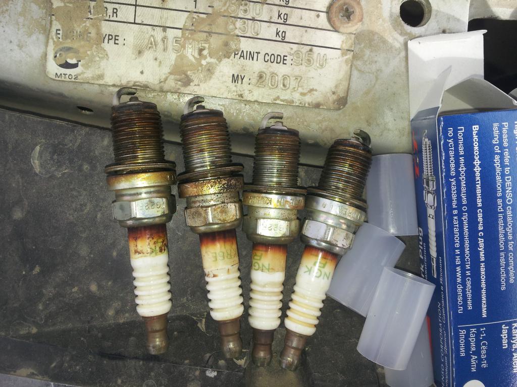 обеднённая смесь, зимой свечки были в хорошем состоянии, я их ещё почистил и закрутил обратно. Сколько они прошли загадка. Пока закрутил обратно нужно менять прокладку кк