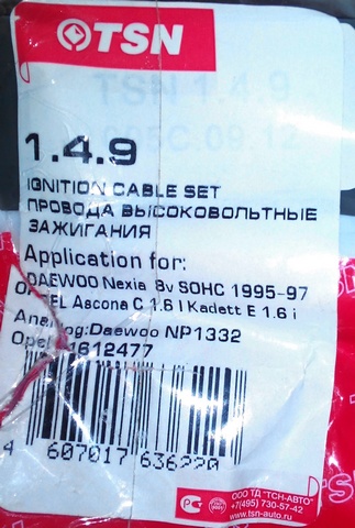 Тогда всё ясно, мои провода, за номером 96305387, которые идут на Новую 8 клапанную Нексию, Шеевроле Авеа и Ленос я уже вряд ли где нибудь найду в настоящем старом GM-мовском исполнении. А вот ваши пока ещё встречаются. В СкМоторс например даже на сайте на фотографии на GM-овских проводах NP1332 визуально просматривается PACKARDовская маркировка провода и цена соответствующая 1250руб. Однако количество осталось 2комплекта всего.