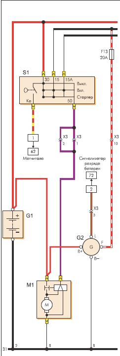 Потому что на лампу ручника с концевика приходит минус. Просто при опущенном ручнике к имеющимся двум плюсам (лампа зарядки и линия F) добавляется ещё один, через лампу ручника и диод в приборке.