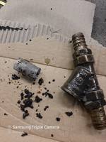 это металлическая крошка, песок, куски герметика.