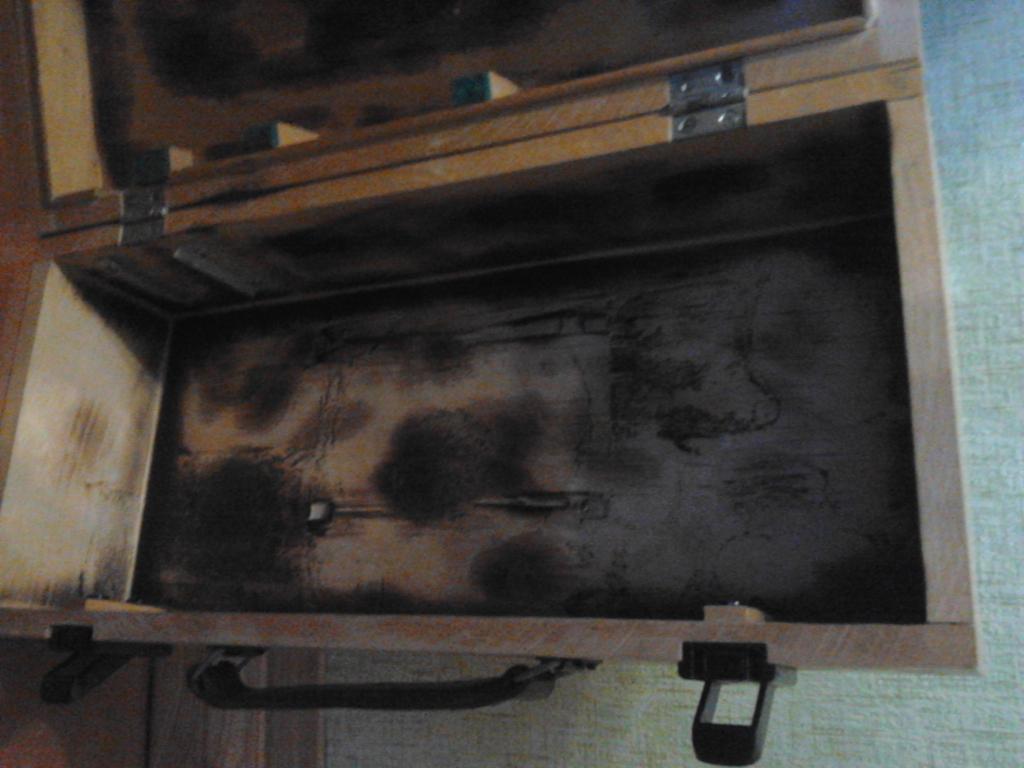 Работа для ванной комнаты. А вот "состаривание" внутренней поверхности ящичка для мото-принадлежностей в гараж. Получился маленький "сундучок с сокровищами".