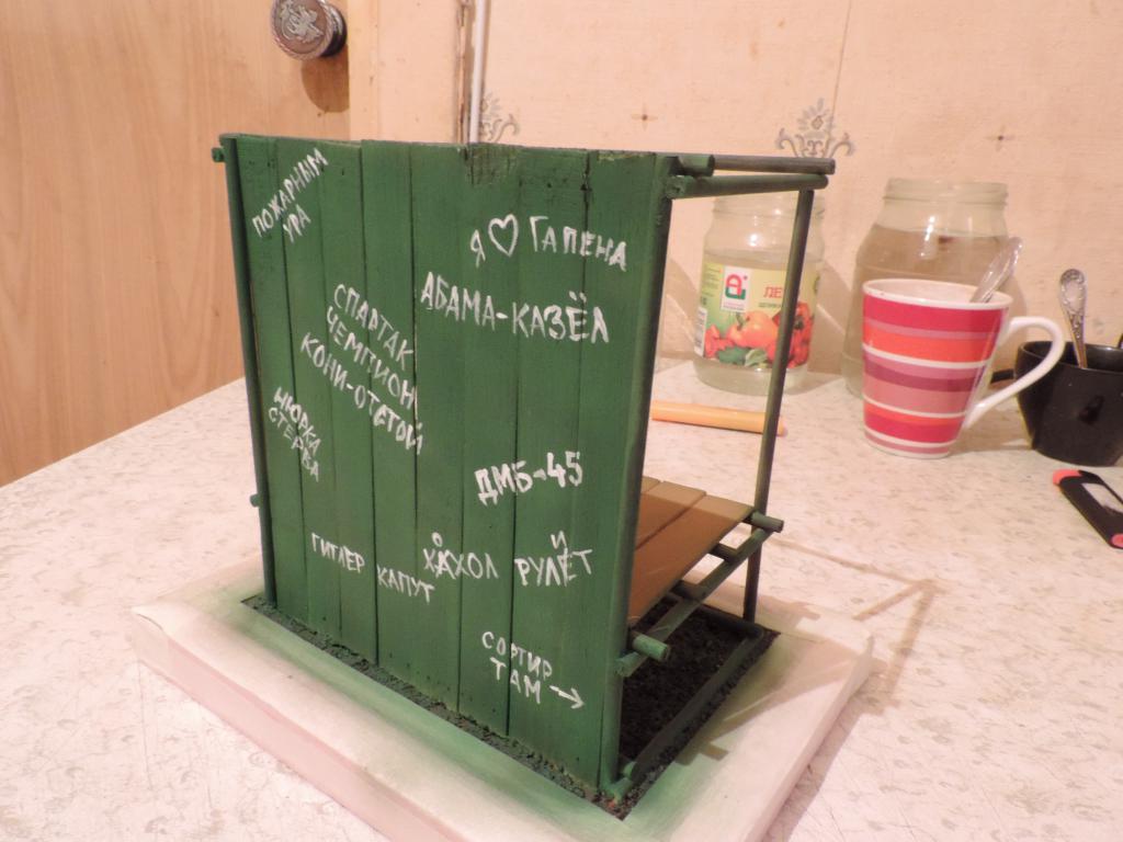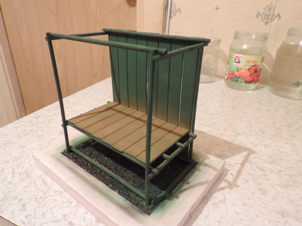 Долго думал, как решить проблему у танка с провисом гусениц. Гусеницы в наборе были резиновые, и никакой клей к ним не цеплялся, чтобы приклеить к колёсам и сформировать провис. Наконец, мысль озарило решение, которое представляю на фотографиях. Разрезал на цилиндры два старых фломастера и приклеил их суперклеем к пластмассовой основе. Потом промазал гусеницы и колёса клеем момент-монтаж, смешанным с пигментом цвета грязи. Наложил заготовку на гусеницы и всё прижал грузом (книгой). После высыхания получилось то, что нужно.