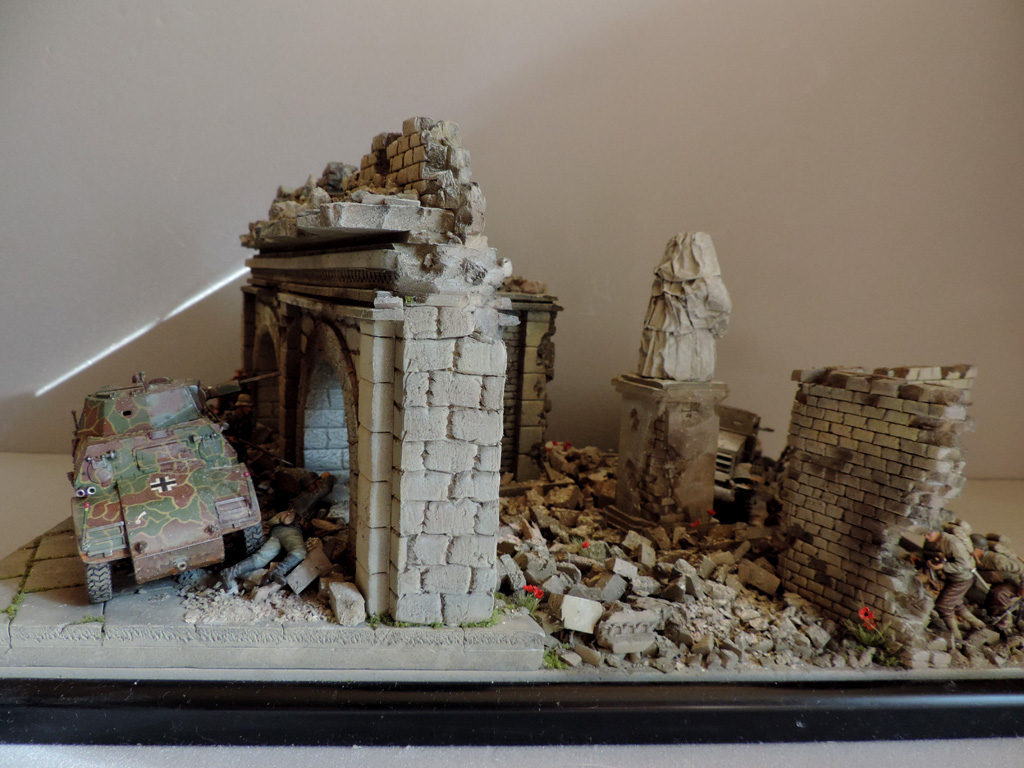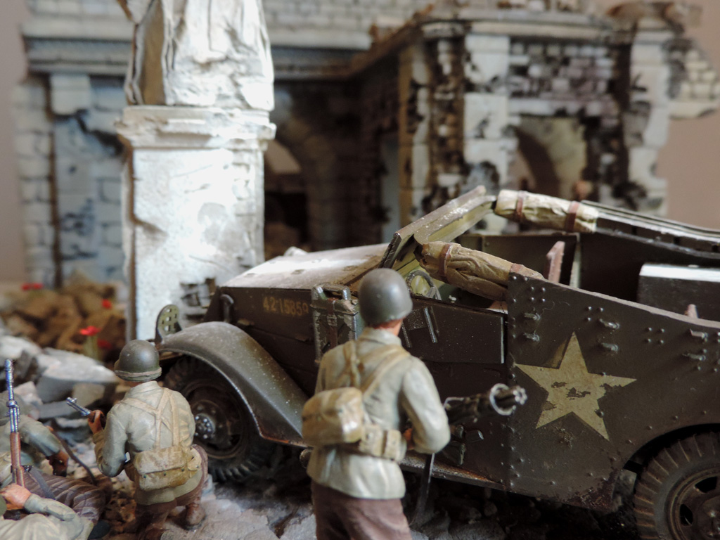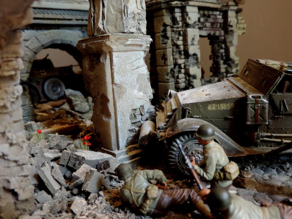 Действие происходит в разрушенном американцами аббатстве Монте-Кассино. Соответственно, союзники наступают (в данном случае – это американские солдаты), а немцы обороняются. Сами немцы эти бои называли «Итальянским Сталинградом». Александр Галич посвятил этим сражениям строки: