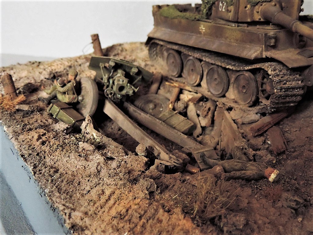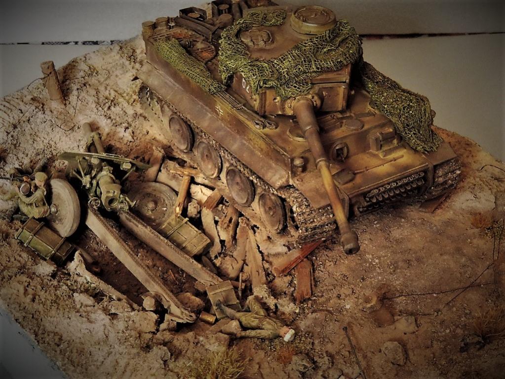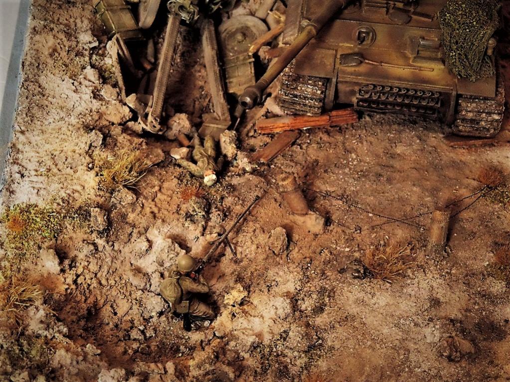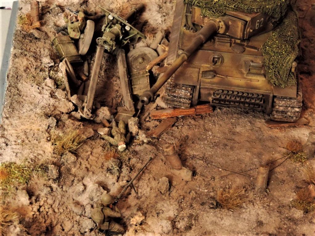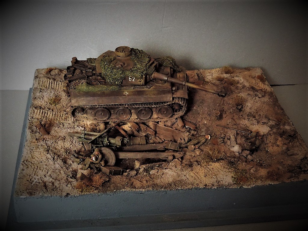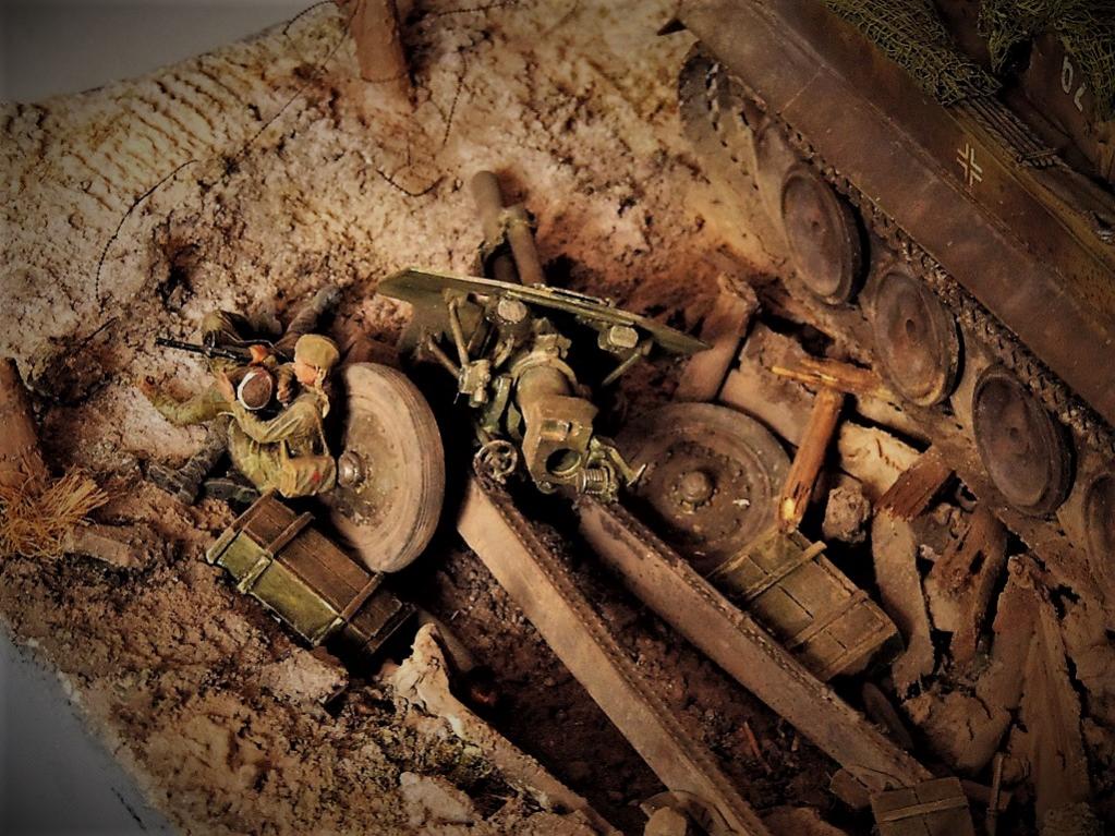 Это верно, Тигра из ПТР не убить и поэтому всё отдаёт большой фантастикой, но история создания диорамы такова: стоял на полке танк, собранный детьми 15 лет назад. Собран был так качественно, что его пришлось переламывать и перетачивать, чтобы привести в какой-то более-менее нормальный вид. А потом стал думать, что можно изобразить с таким танком. Ничего лучшего не придумалось. Получилось "По мотивам фильма". Ну, как-то так...