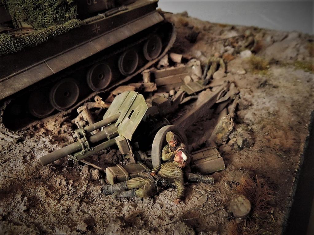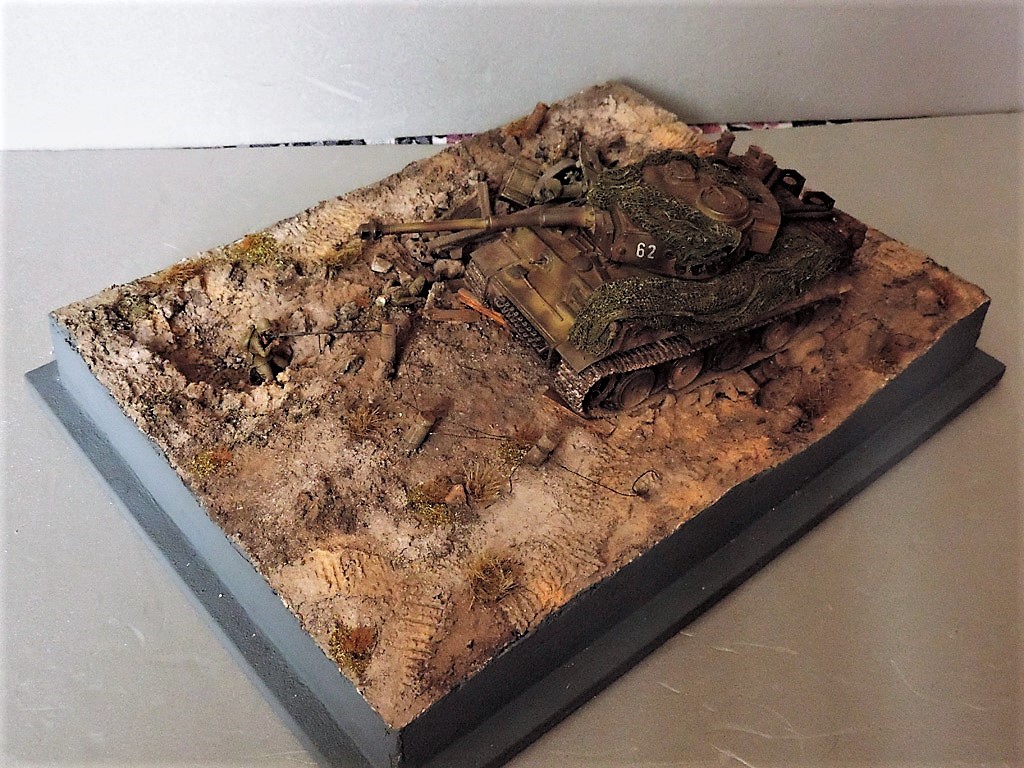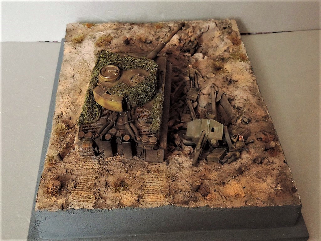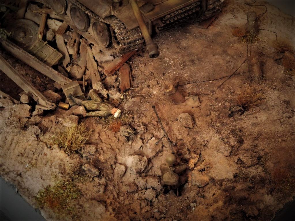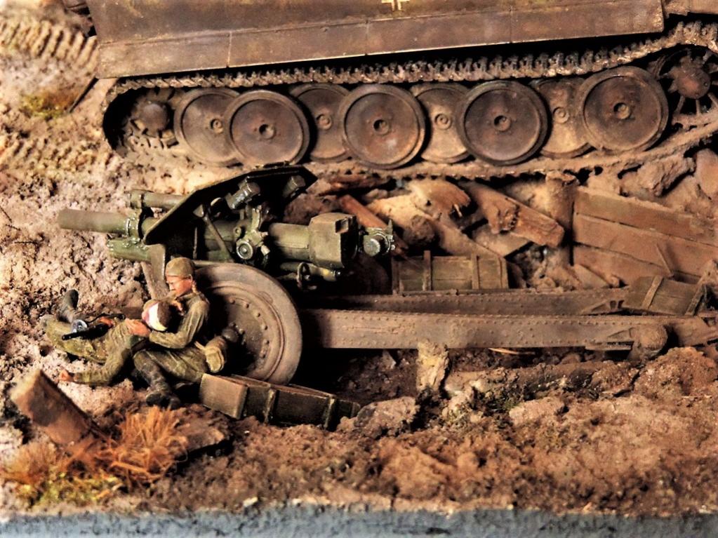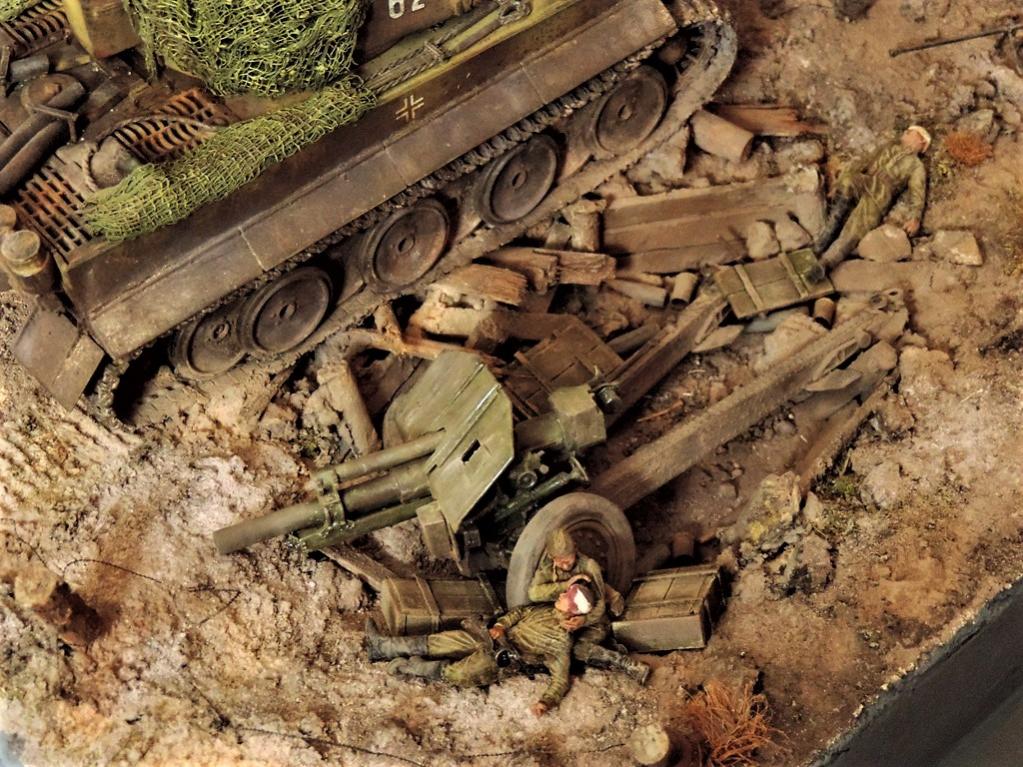 Это верно, Тигра из ПТР не убить и поэтому всё отдаёт большой фантастикой, но история создания диорамы такова: стоял на полке танк, собранный детьми 15 лет назад. Собран был так качественно, что его пришлось переламывать и перетачивать, чтобы привести в какой-то более-менее нормальный вид. А потом стал думать, что можно изобразить с таким танком. Ничего лучшего не придумалось. Получилось "По мотивам фильма". Ну, как-то так...