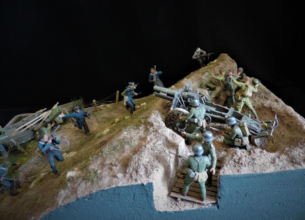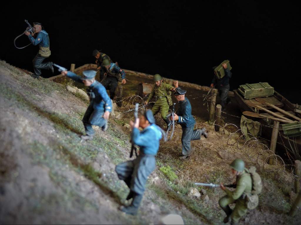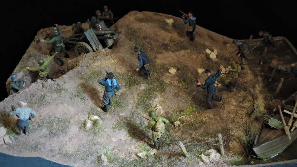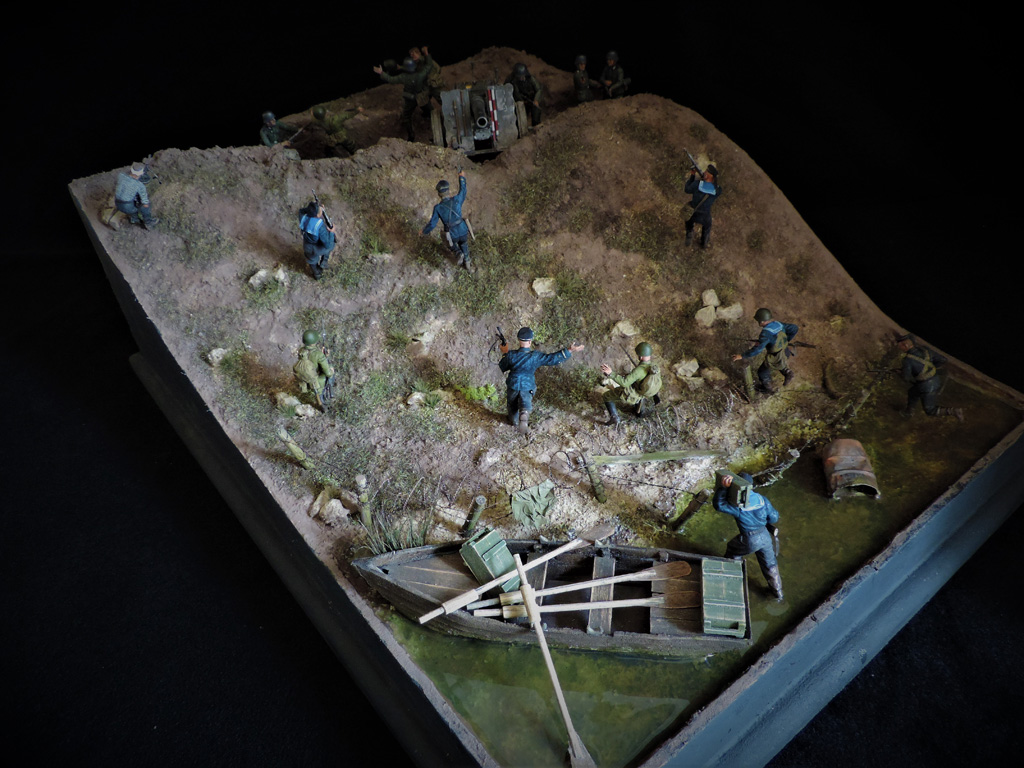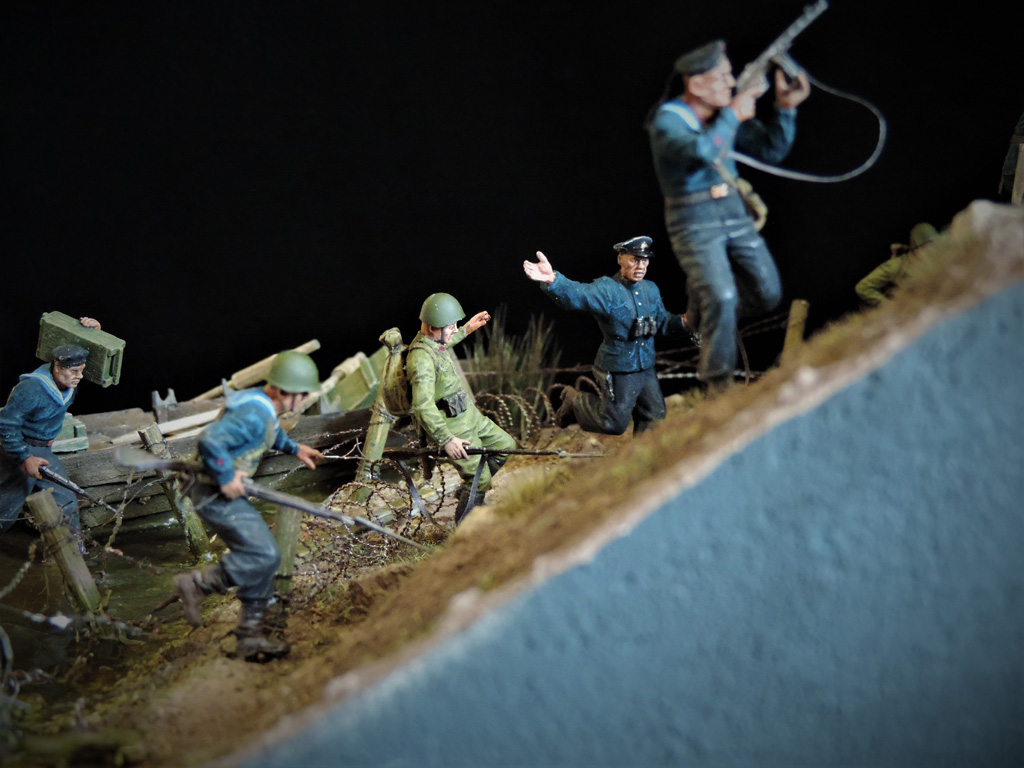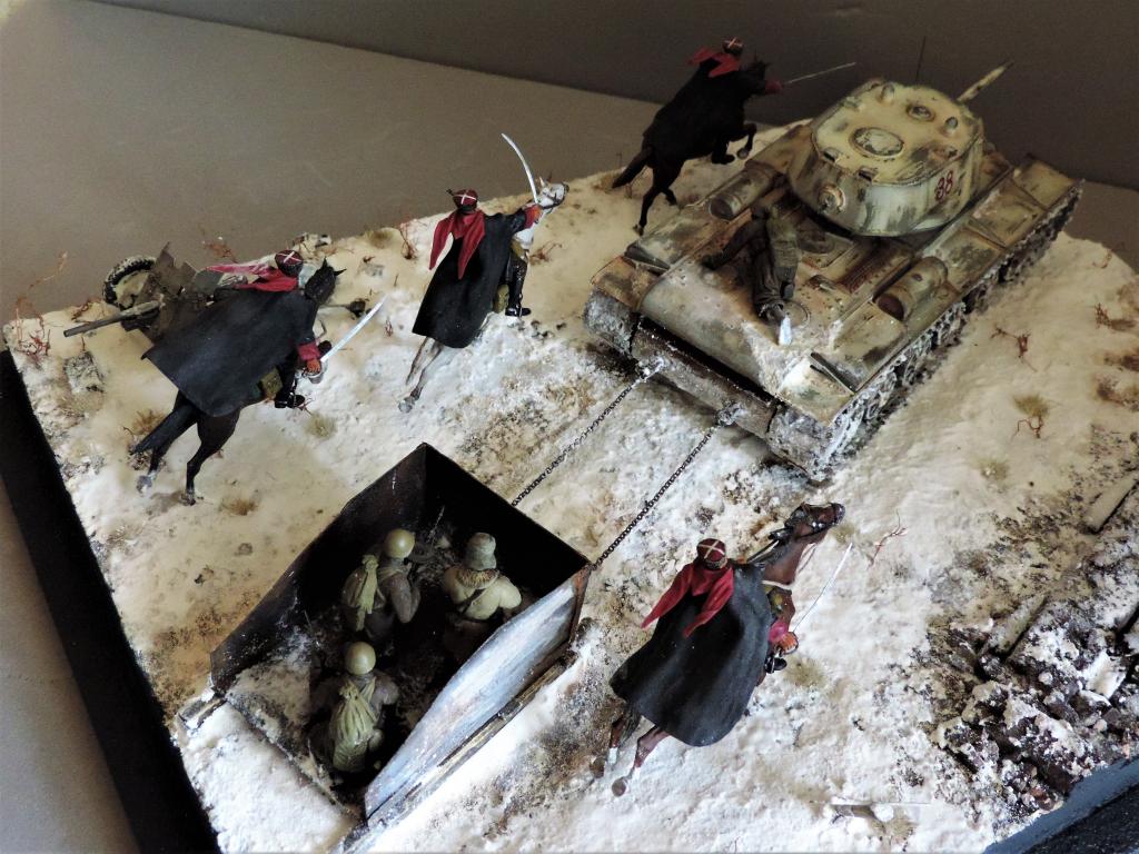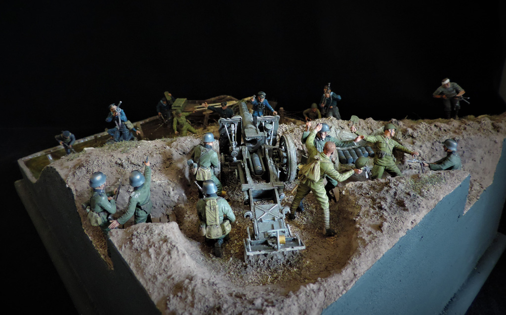 Это верно, Тигра из ПТР не убить и поэтому всё отдаёт большой фантастикой, но история создания диорамы такова: стоял на полке танк, собранный детьми 15 лет назад. Собран был так качественно, что его пришлось переламывать и перетачивать, чтобы привести в какой-то более-менее нормальный вид. А потом стал думать, что можно изобразить с таким танком. Ничего лучшего не придумалось. Получилось "По мотивам фильма". Ну, как-то так...