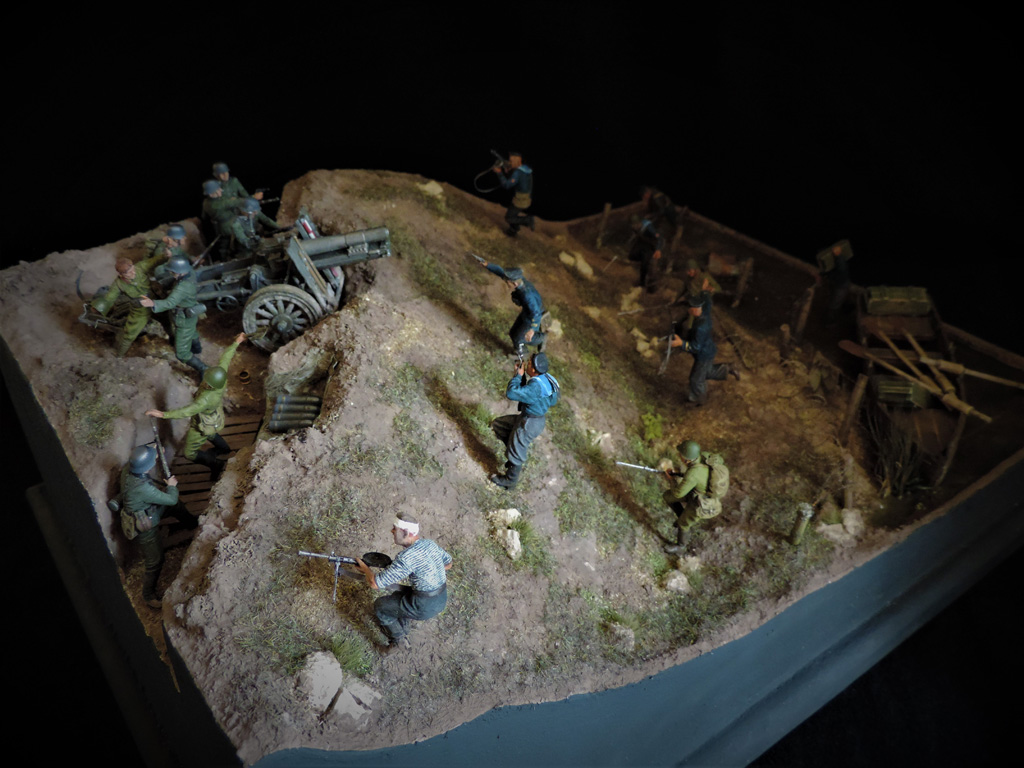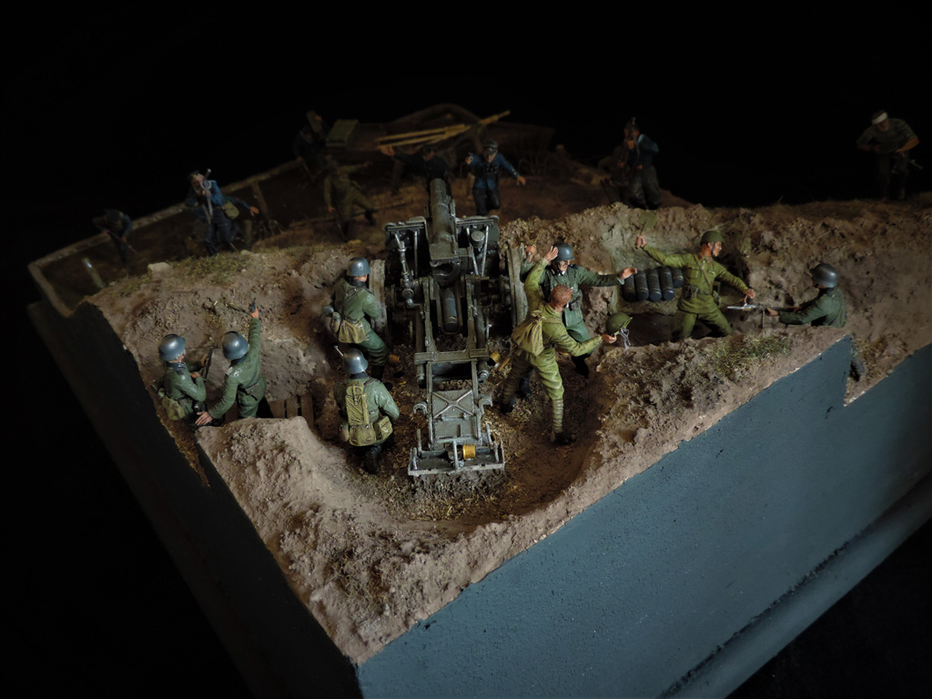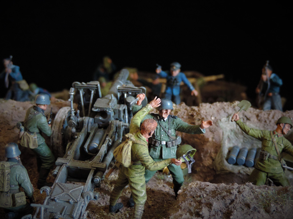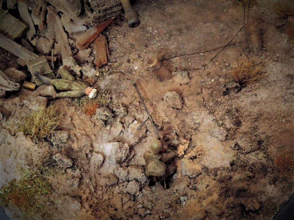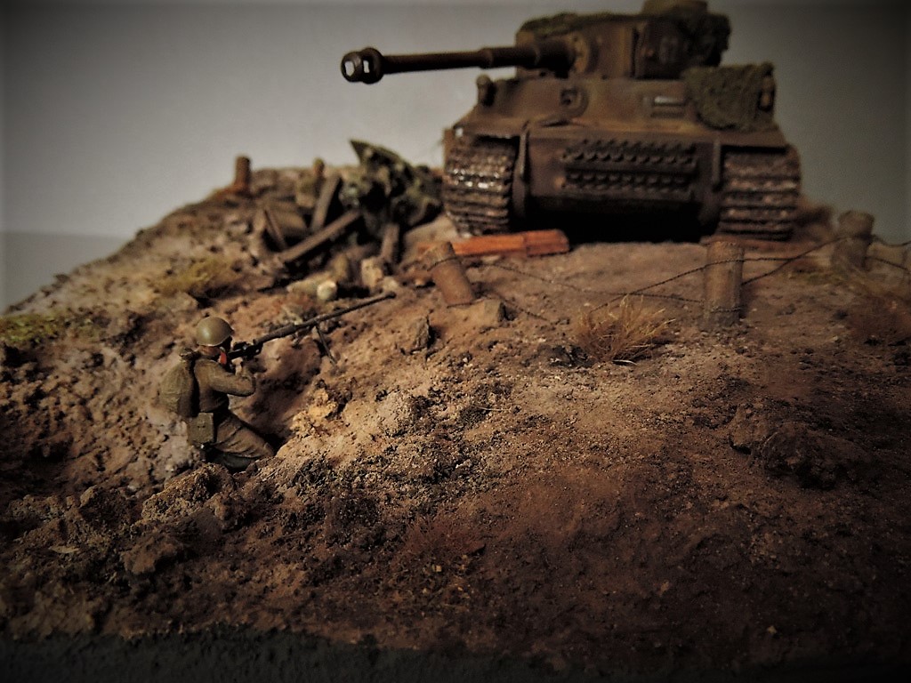 Доброго времени суток, други. Пока суть да дело, на меня навеяло смастерить диораму по мотивам одного из эпизодов легендарного Советского фильма "Баллада о солдате". Это тот самый момент, когда связист Алёша Скворцов подбивает немецкий танк из найденного в воронке противотанкового ружья. Реального сходства один в один с кадрами фильма нет. Есть идея, взятая из кинокартины.