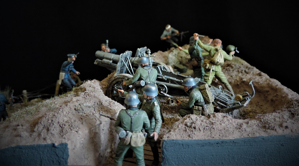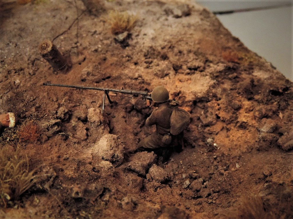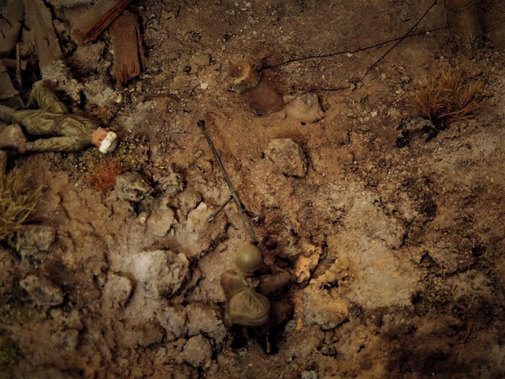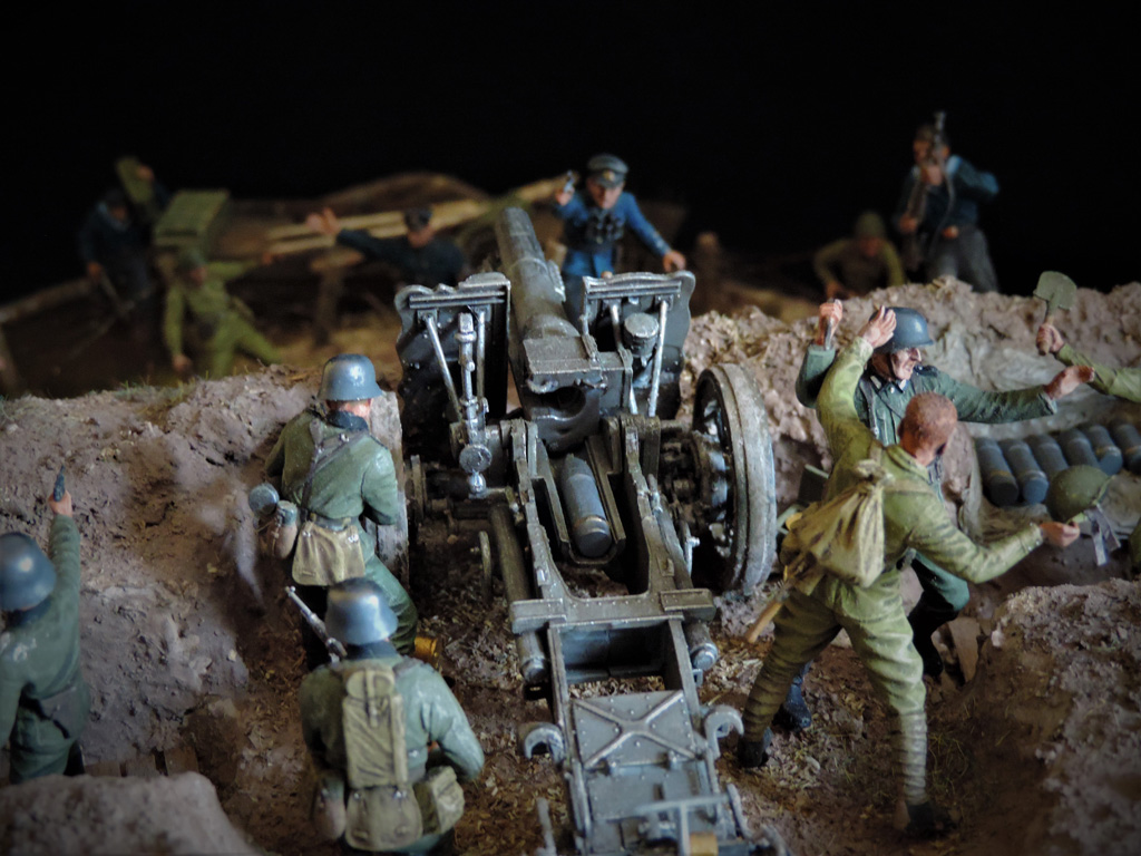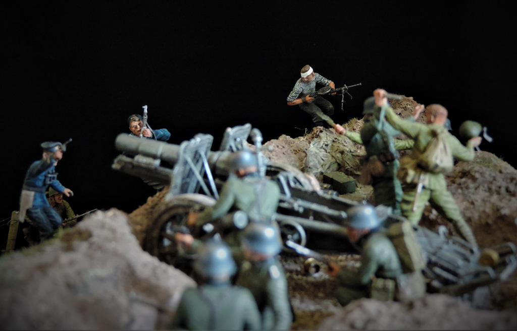 Доброго времени суток, други. Пока суть да дело, на меня навеяло смастерить диораму по мотивам одного из эпизодов легендарного Советского фильма "Баллада о солдате". Это тот самый момент, когда связист Алёша Скворцов подбивает немецкий танк из найденного в воронке противотанкового ружья. Реального сходства один в один с кадрами фильма нет. Есть идея, взятая из кинокартины.