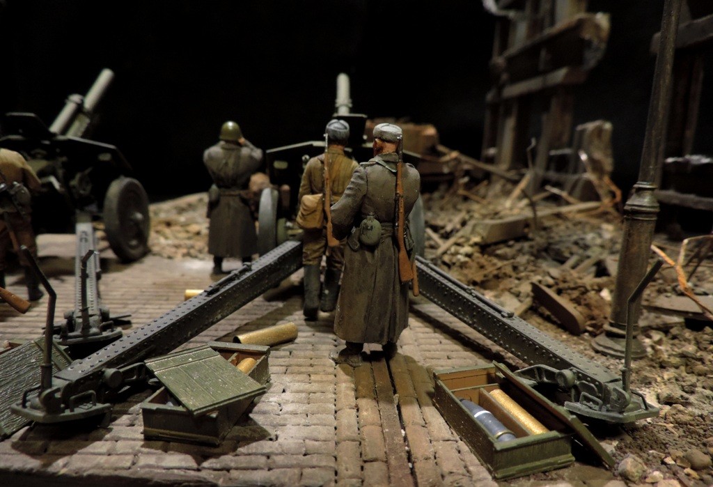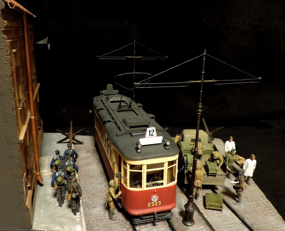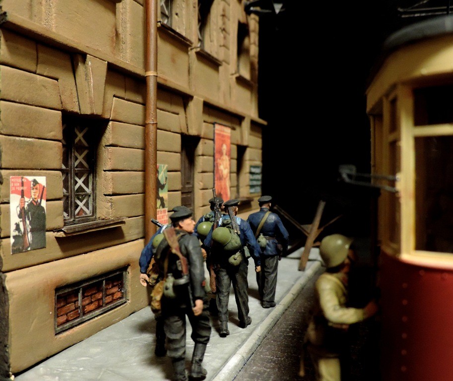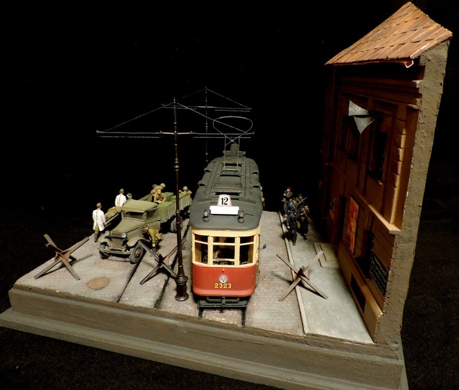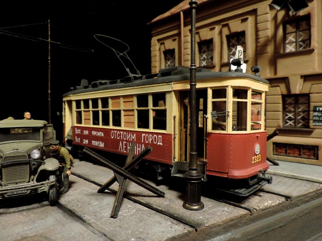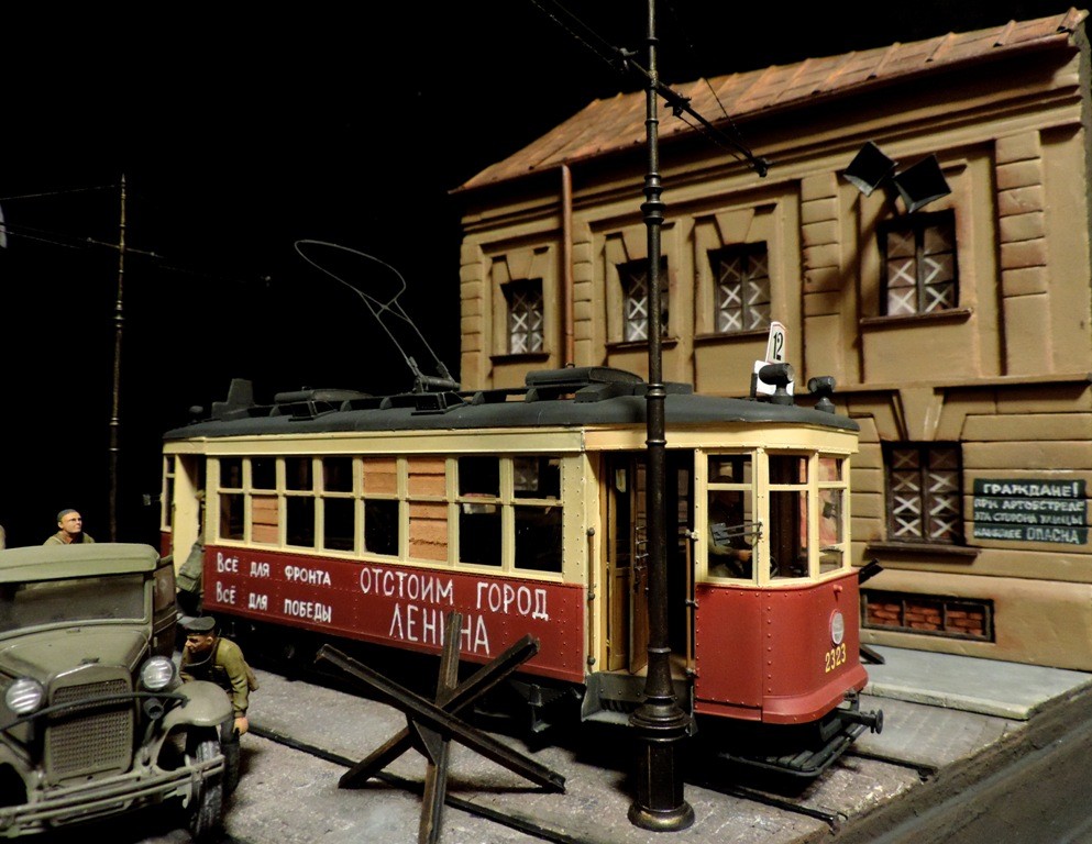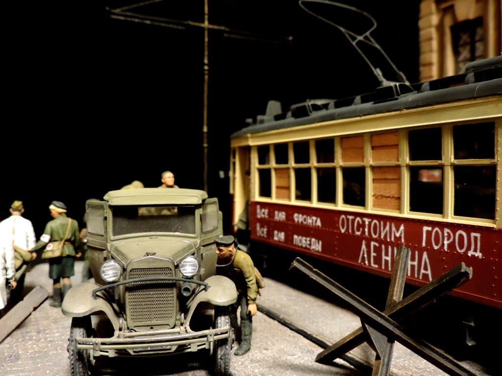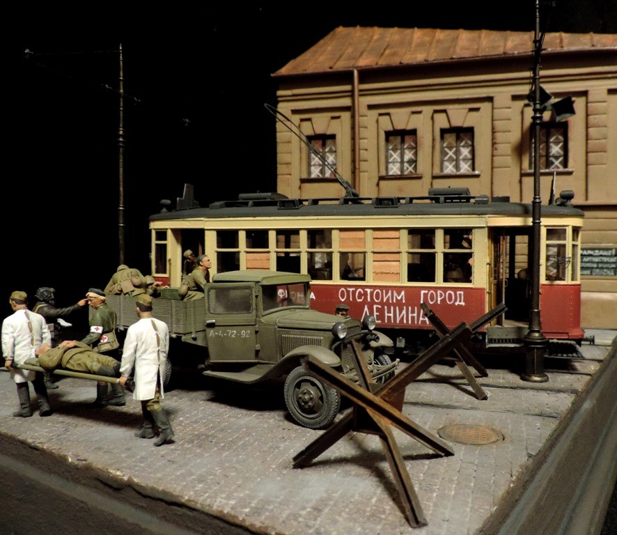 Вроде бы, получилось загрузиться на "радикал". Сейчас постараюсь разместить фотографии. Итак, завершена очередная диорама. Называется "Трамвай идёт на фронт".Посвящена обороне Ленинграда в начальный период войны, когда кольцо блокады ещё не сомкнулось. Название диорамы, идею и сюжет подсказали архивные фотографии и строки стихов Веры Инбер: