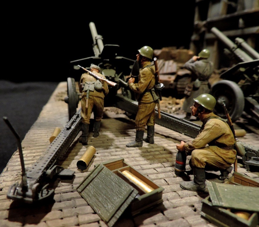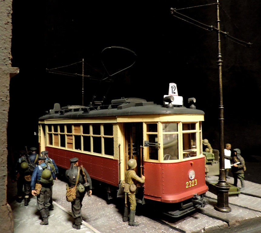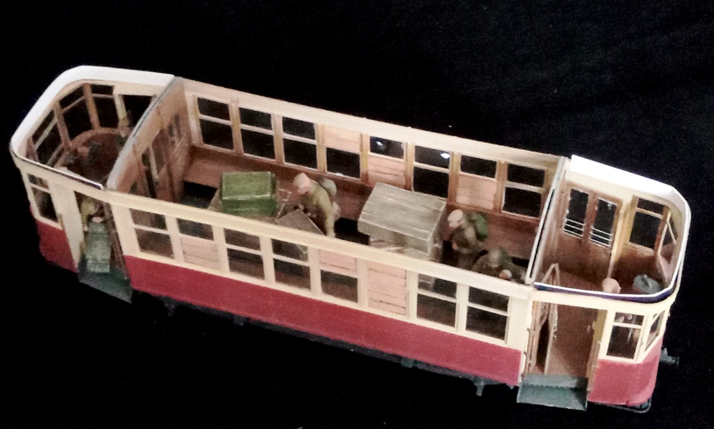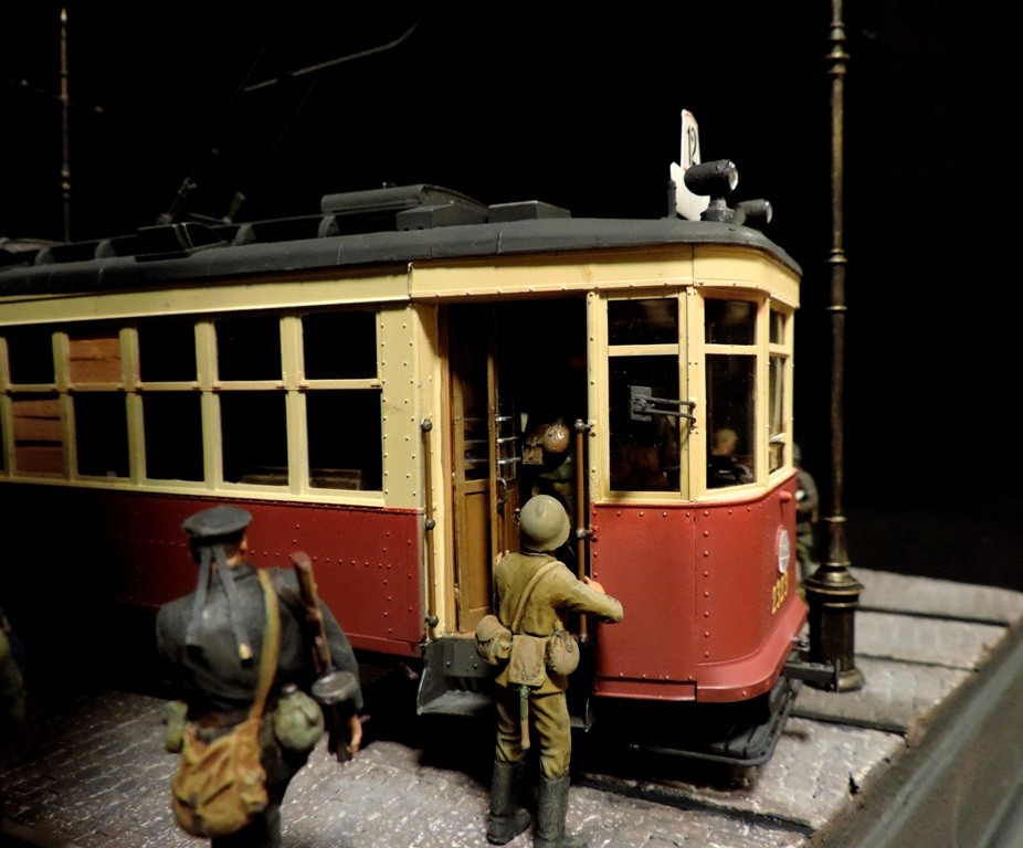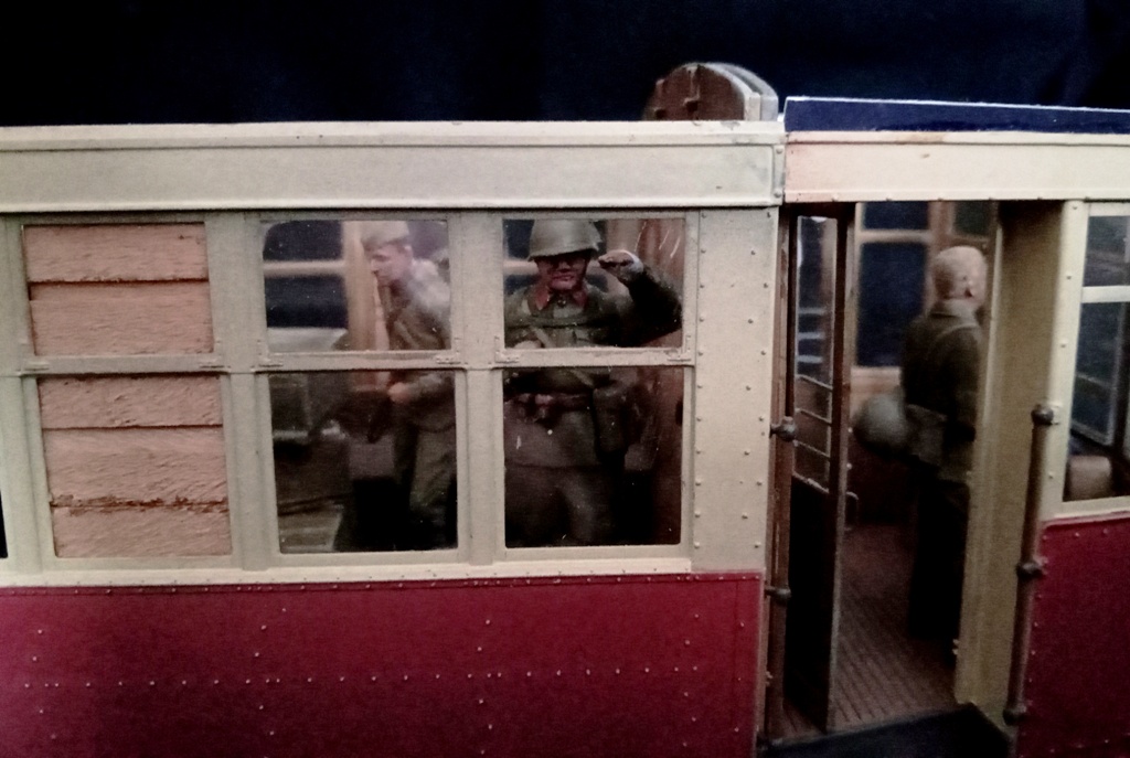 Для диорамы с трамваем понемногу наполняю салон трамвая бойцами и военным имуществом, которых это транспортное средство повезёт к линии фронта. Прошу прощения за качество снимков. Снимал на телефон, и, к сожалению, у меня не получаются с него чёткие фотографии. В общем, работы ещё выше крыши. Как говорил Паниковский: "Пилите, Шура, пилите..."![]()