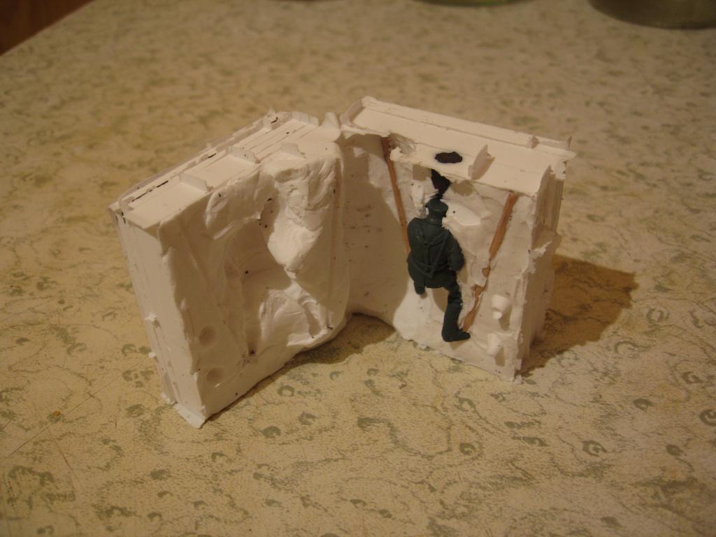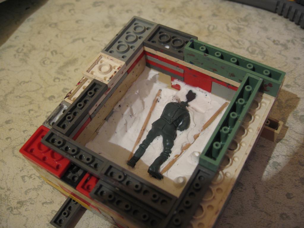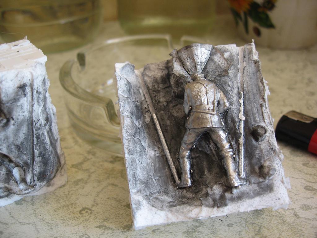 Смотрел-смотрел на диораму и решил закрасить весёленькое основание в серый тон. Отвлекало, однако, от самого сюжета. В-общем, всё осталось на месте, только цветочков теперь не существует.