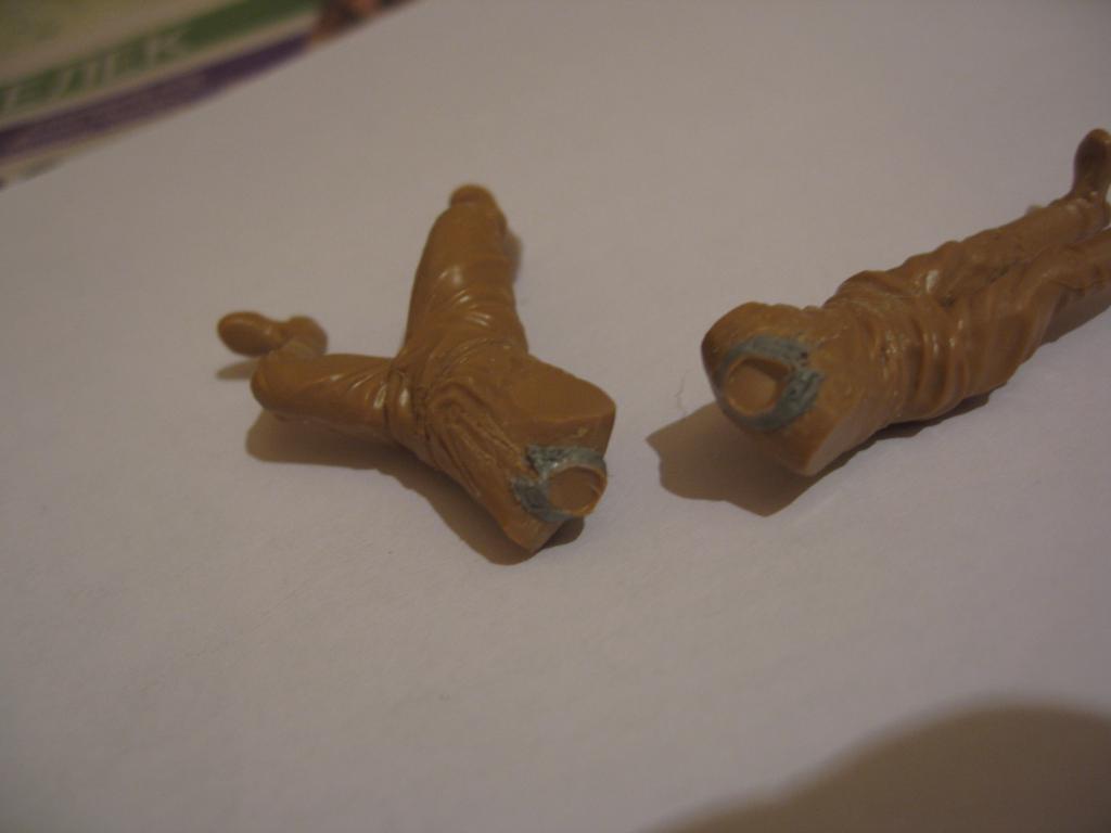 Попутно начинаю дорабатывать фигуры бойцов. Красноармейцы, которые у меня есть в наличии, одеты в форму 1943 года с погонами. Срезал ножом и сточил надфилем все погоны и ремни, которые были отлиты на пластмассе. Из эпоксилина сделал для формы воротники, которые были на гимнастёрках в 1941-42 годах. Воротники формировал с помощью ножа. Когда эпоксилин затвердеет - останется их чуть-чуть подточить-подровнять надфилем..