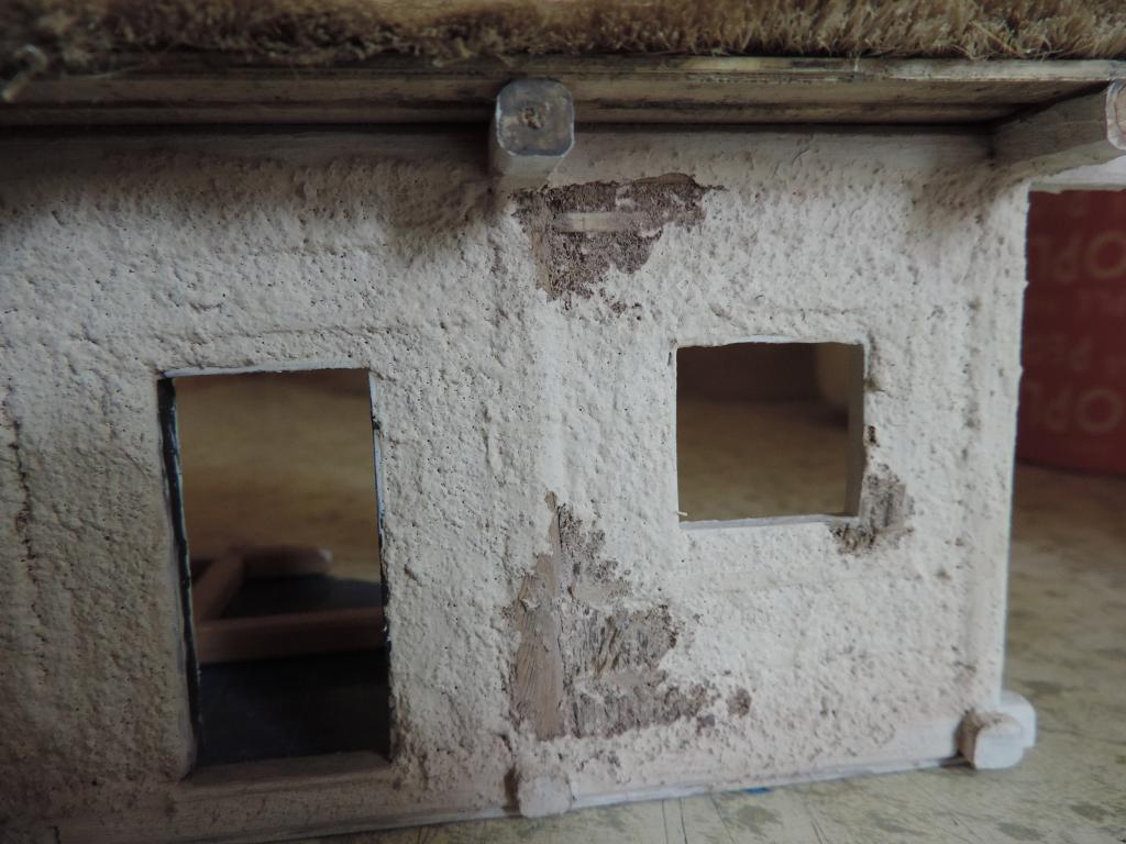 Да, Дим, ради нескольких сколов извёстки пришлось так усложнять. Конечно, когда хата встанет на небольшой фундамент и установится в диораму, будем ещё кое-где отколупывать и, наверное, слегка подбеливать. Темновато немного смотрится. Может, натуральной известью попробовать слегка побелить. Да сейчас уже известью-то никто и не пользуется. Наверное, мел разведу в воде с ПВА и попробую на чём-нибудь.