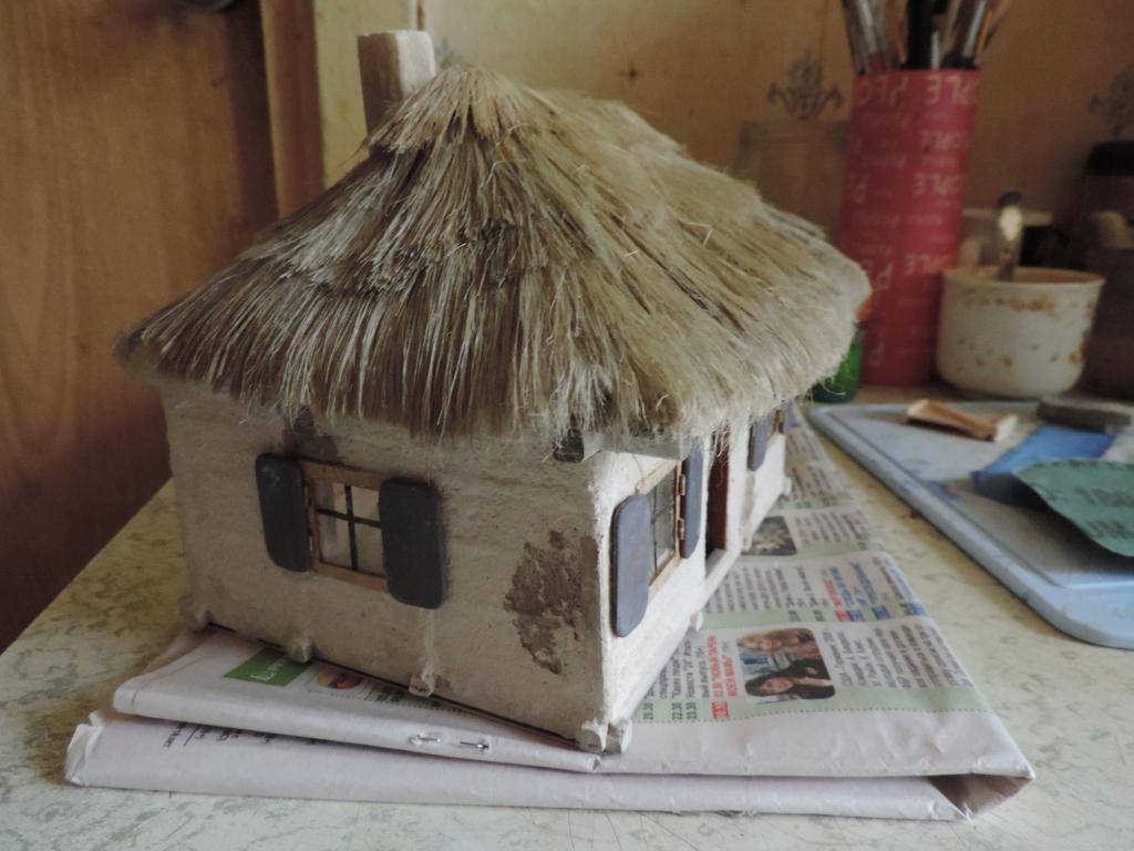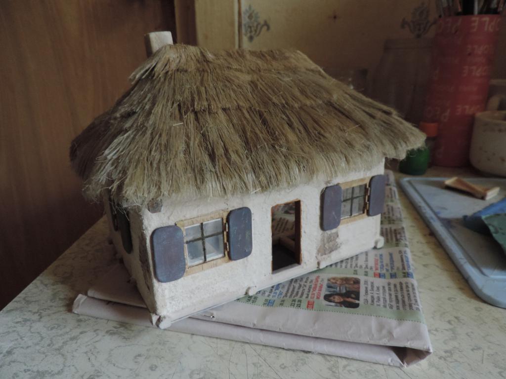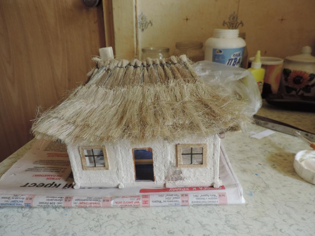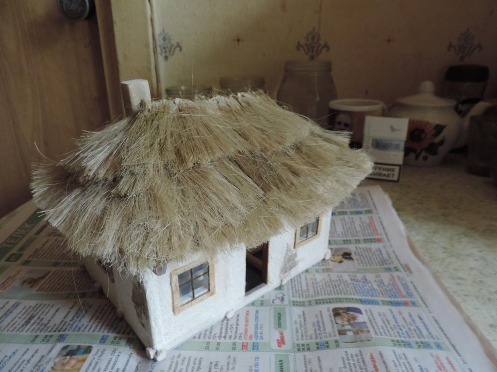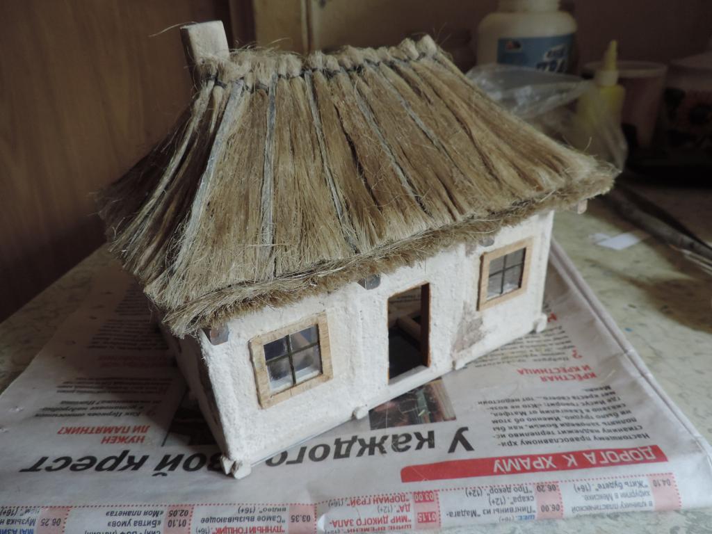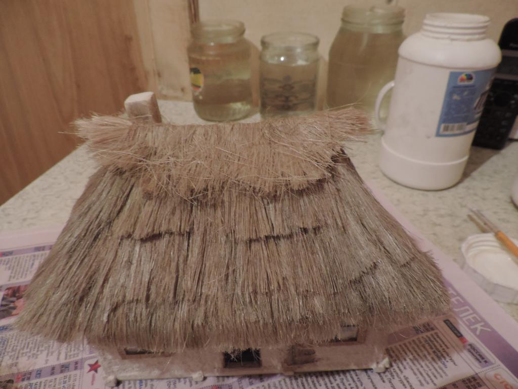 А моделизмом 1:35 кто-нибудь увлекается?-dscn0603.jpgА моделизмом 1:35 кто-нибудь увлекается?-dscn0605.jpgА моделизмом 1:35 кто-нибудь увлекается?-dscn0606.jpgА моделизмом 1:35 кто-нибудь увлекается?-dscn0609.jpgА моделизмом 1:35 кто-нибудь увлекается?-dscn0613.jpgА моделизмом 1:35 кто-нибудь увлекается?-dscn0618.jpgКогда первый слой соломы высох, настилаю второй. Приклеваю на полоску бумаги сантехнический лён и вот такие полоски "ступеньками" приклеиваю к крыше. Когда все слои уложены, оставляю до капитального высыхания клея, чтобы потом формировать верхушку и углы крыши. А уже потом всю солому буду подравнивать машинкой для стрижки волос.