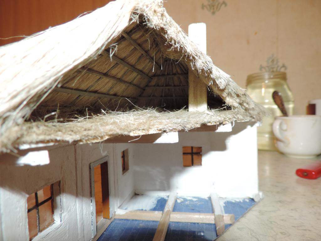 А моделизмом 1:35 кто-нибудь увлекается?-dscn0619.jpgА моделизмом 1:35 кто-нибудь увлекается?-dscn0621.jpgА моделизмом 1:35 кто-нибудь увлекается?-dscn0622.jpgА моделизмом 1:35 кто-нибудь увлекается?-dscn0623.jpgА моделизмом 1:35 кто-нибудь увлекается?-dscn0624.jpgА моделизмом 1:35 кто-нибудь увлекается?-dscn0626.jpgА моделизмом 1:35 кто-нибудь увлекается?-dscn0627.jpgДо верхушки крыши сегодня руки не добрались, зато занимался "причёской" - стриг, причёсывал, и заодно покрасил солому слабым-слабым раствором серой краски (гораздо слабее, чем использовал при старении древесины). Аж самому понравилось, какая причёска у крыши получилась.
