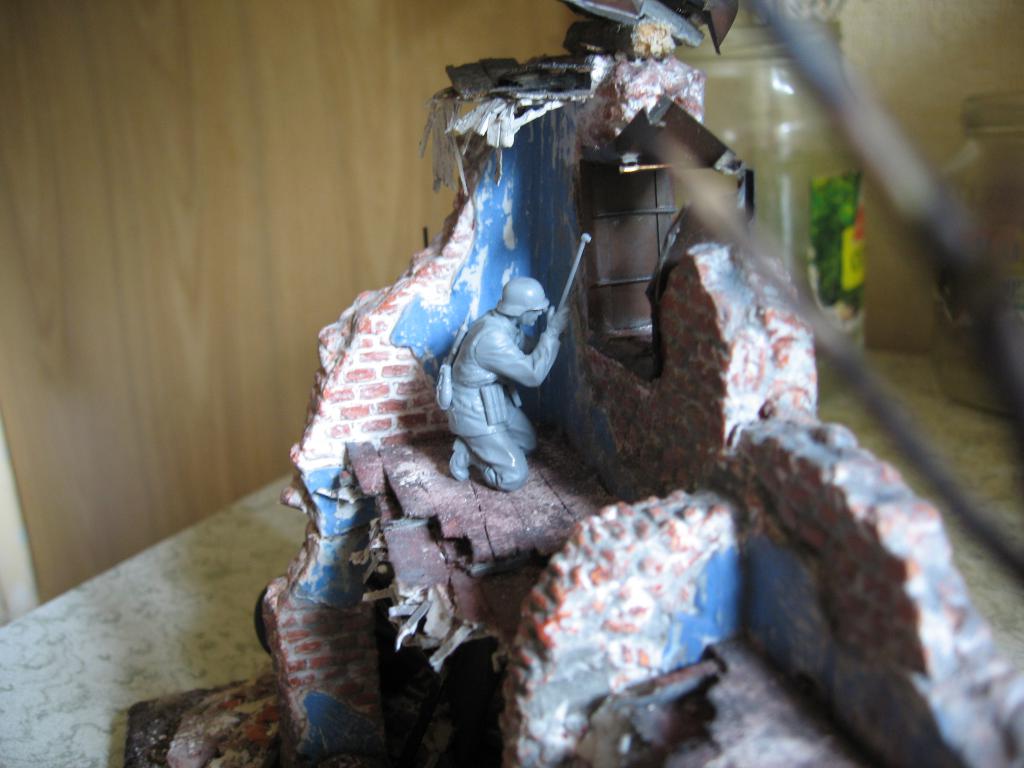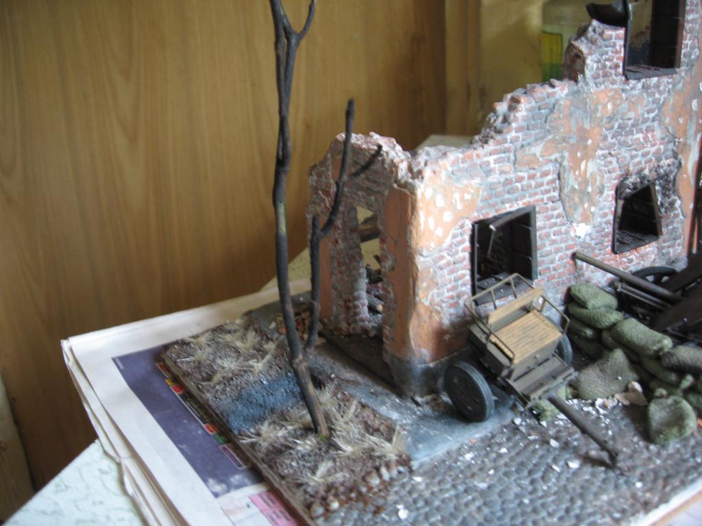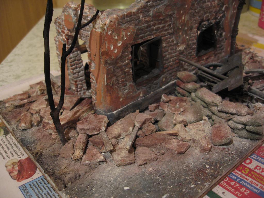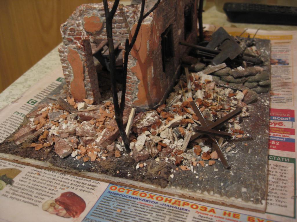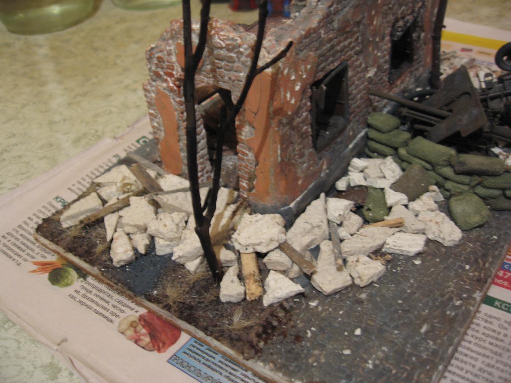 Подошла очередь дерева. Одну из веточек поджигаю над газовой плитой, и когда всё хорошо разгорается, засовываю под струю воды, чтобы погасить огонь. Отгоревшие ветки отлетают и остаётся то, что я высажу на газон. Главное - набрать побольше подходящих веток, потому что может отгореть так, как надо, а может быть, только с десятой ветки получится удачно сгоревшее дерево. В моём случае, меня устроило всё и с первого поджигания. Обгоревший огузок высаживаю так же, как и траву.