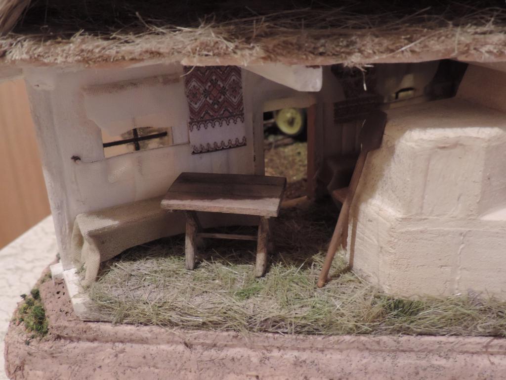 Да какое-там главное сделано, Дим? Ещё танк красить, фигуры, телегу во дворе поставить, растительности насажать - всякой мальвы да подсолнухов. Работы ещё полным-полно. Не забыть ешё ставни переделать - так и просятся в топку. Дровишек надо будет заготовить крестьянам поленницу. Дверь готова, но приделывать буду позже. Грядки, наверное, нужно какие-то предусмотреть. Горшки повесить на плетень и побитые разбросать - уйма чего ещё. А на нынешний момент поломанный плетень приклеился к поверхности и вот танк на плетне будет выглядеть примерно так, как на фото. Гусеницы металлические для БТ-7 не могу найти нигде - вот проблема. То их было в каждом магазине полным-полно, а теперь надо ждать, когда привезут.