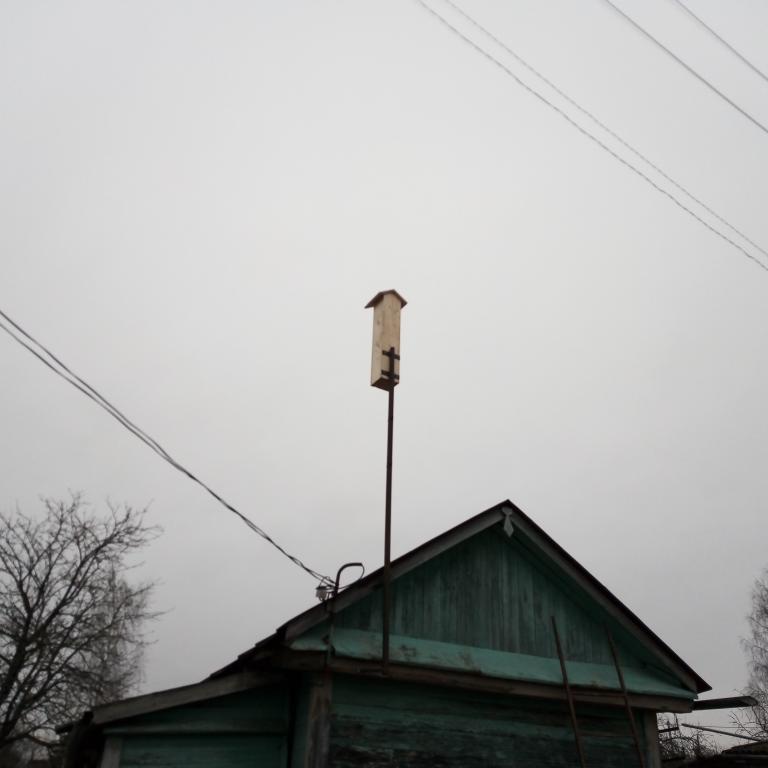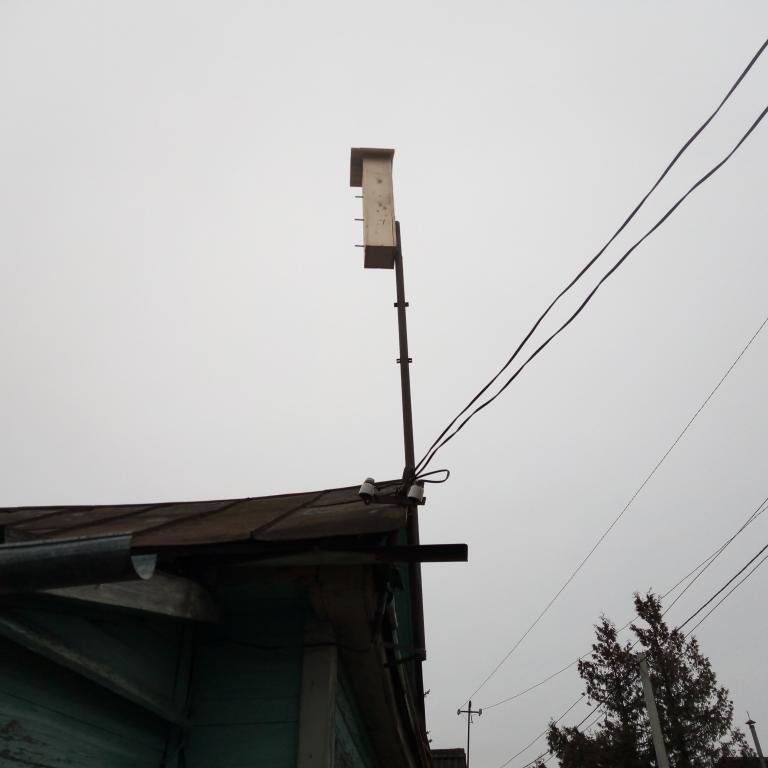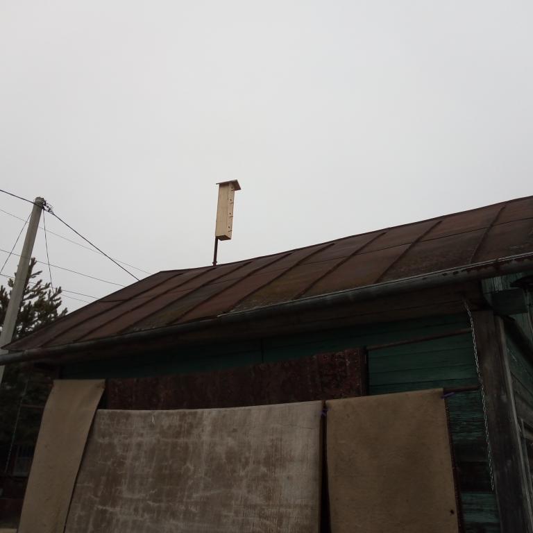 Чтобы строиться для начала нужно электричество хорошее наладить...новая линия уже есть,только нужно к ней подключиться.Сделал новую трубу-стойку для подвода к дому сип-кабеля.Стойку укрепил на дом и стал думать чем заткнуть верхнюю дырку в трубе чтоб труба с нутри не шибко ржавела...сразу то не допёр купить пласмассовую заглушку.Думал-думал да и вспомнил что у меня скворечник есть...вот им и заткнул дырку