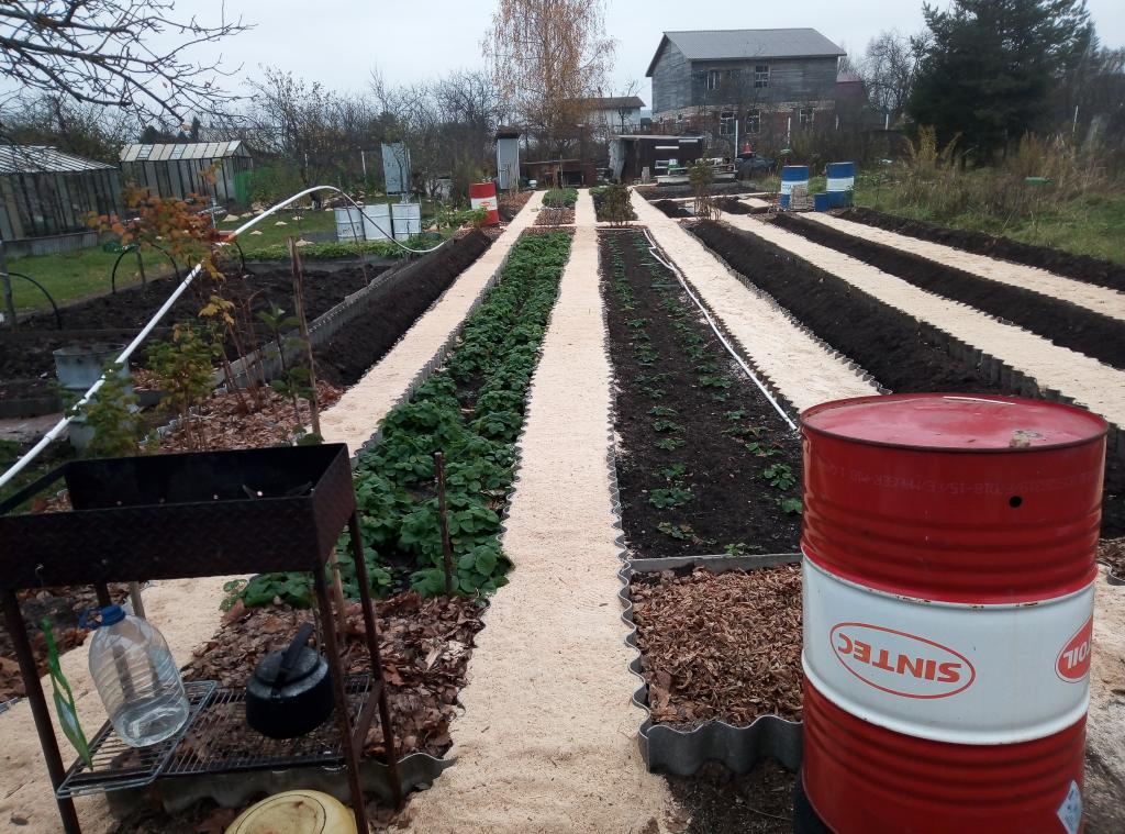 Я не стал изголятся ни со щебнем ни с песком...три года назад привёз больше 200 мешков опилок и все дорожки им отсыпал слоем сантиметров в 20.Дорожки белые,мягкие и травы нет.В этом годе ещё 140 мешков привёз и ещё досыпал по борта.За 3 года те опилки просели,уплотнились,потемнели.Думал дольше пролежат.Отсыпал с расчётом что они лет за 5 перепреют и я их в грядки перекидаю,и удобрение нормальное и грядки поднимутся.Те дорожки которые отсыпал лисвенными опилками уже перепрели и стали бурыми,хвойные ещё держаться.Опилки у нас халява...только вывозить не ленись,ещё и спасибо скажут.