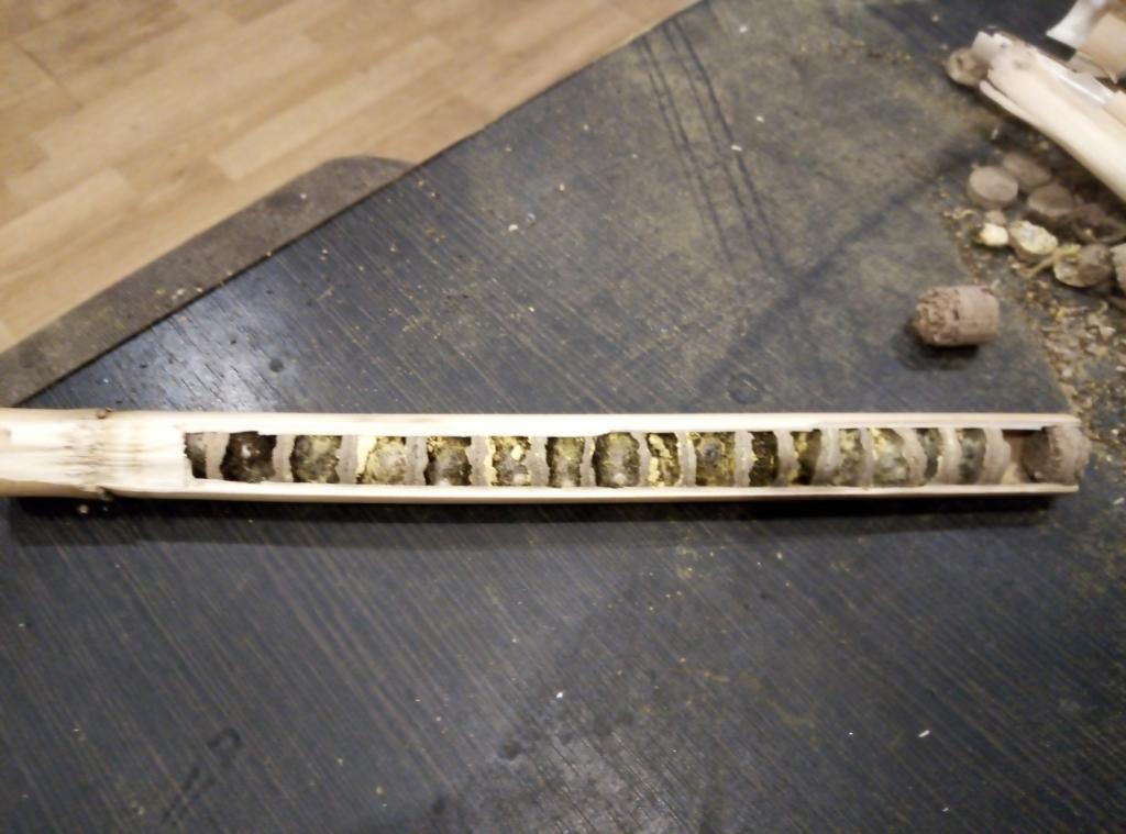 На следующий год моих камышовых трубок чую уже не хватит.Сделал им для пробы обойму трубок с бумаги но чота пчёлам они не понравились.Заполнили личинками всего 2 трубки.