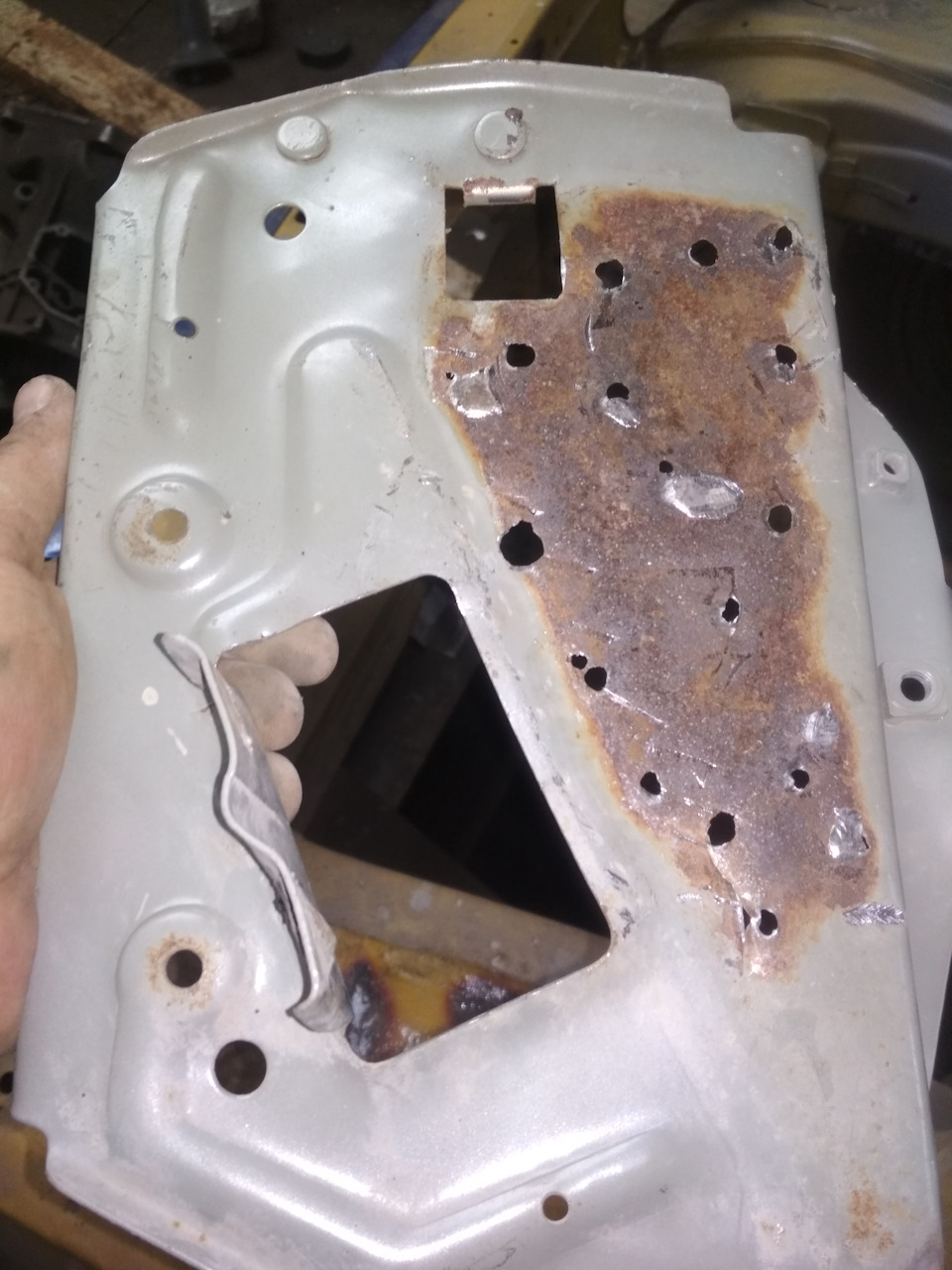 Снаружи машина была еще бодрячком, если не смотреть на последствия ДТП, а вот чуть колупнешь - уже вот такая картина, кругом гниль, хотя до аварии, из-за которой машина попала в разбор, в других ДТП она не участвовала, следов ремонта не было, везде заводская краска. Там от удара вскрылся шов на лонжероне - он внутри точно такой же. Так что в итоге, Нексии последних лет выпуска сгниют самыми первыми.