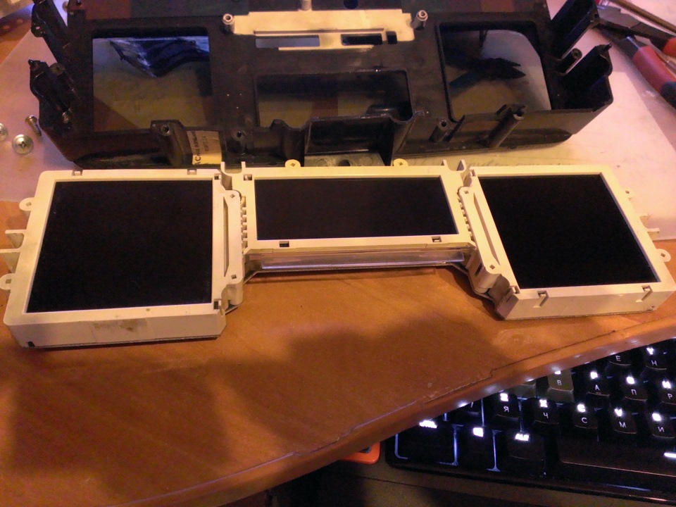 Теперь буду искать другую полумертвую приборку, у которой цел экран спидометра, а повреждено что-то другое (такие втречаются часто), с нее сниму экран и переставлю себе, благо в приборке экраны раздельные, отдельно спидометр, тахометр и все остальное, можно менять по отдельности, даже пайка не требуется, все на болтах.