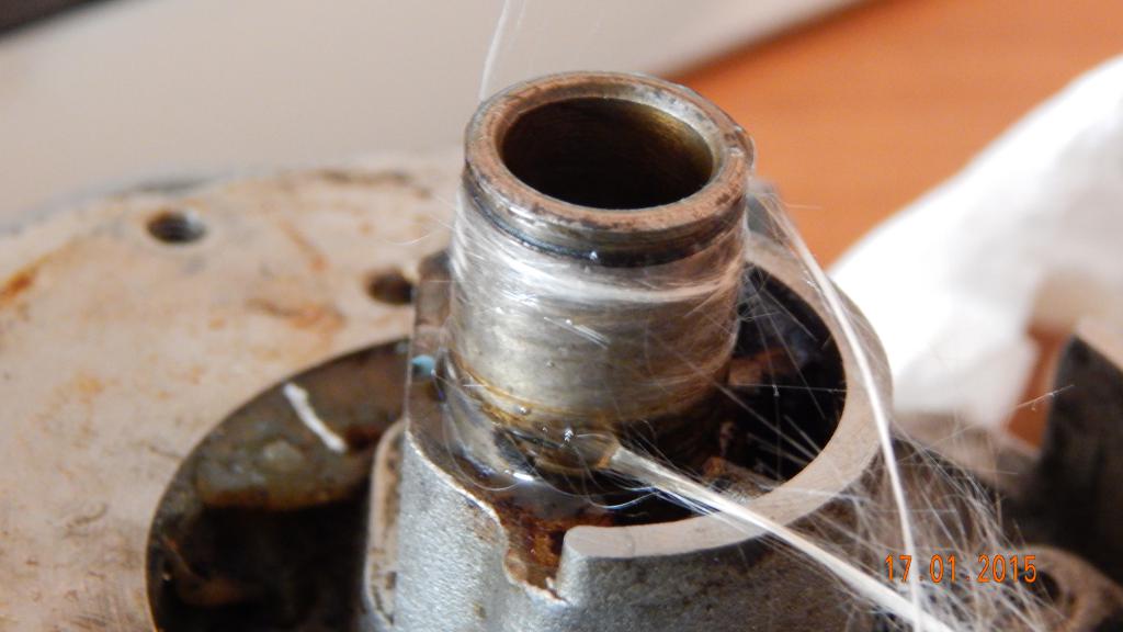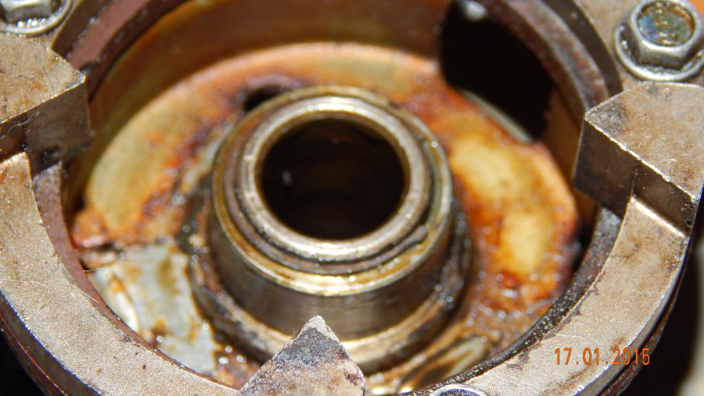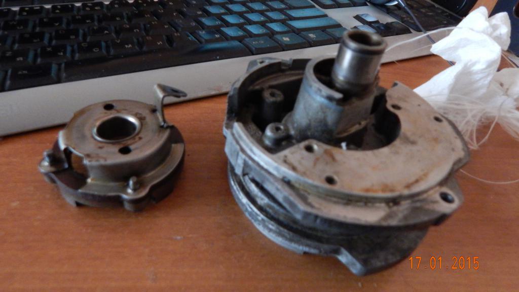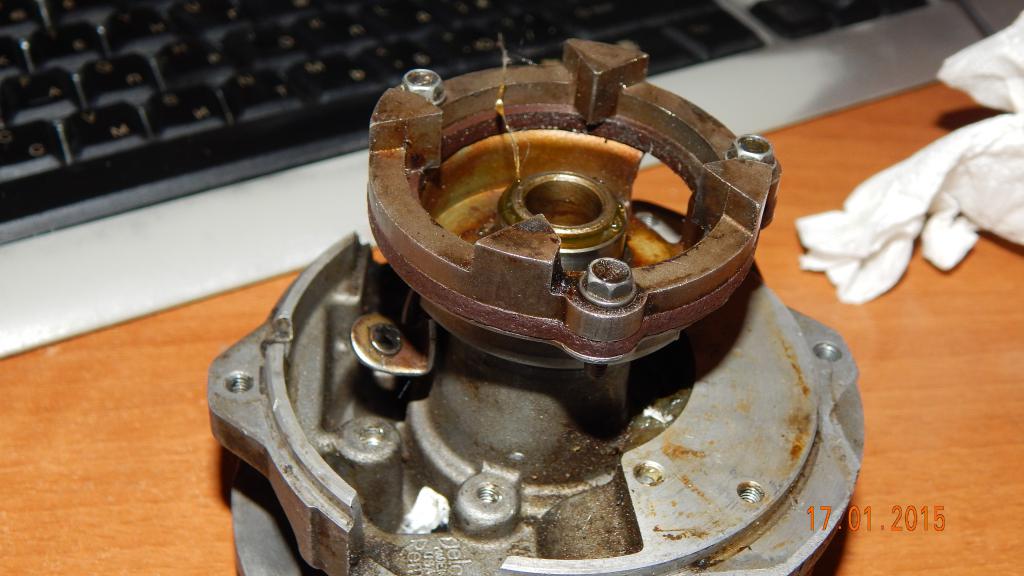 Подшаманил еще трамблер. Проблема была в том, то была изношена втулка, в которой вращается площадка со статором индуктивного датчика (от вакуум-корректора), в результате чего появился люфт и магнит начал задевать за лопасти ротора (там зазор меньше миллиметра).