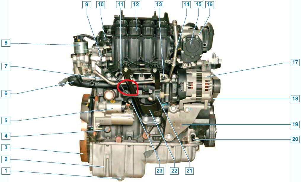 Чтобы до него долезть, нужно снять кронштейн #22 и стартер.
