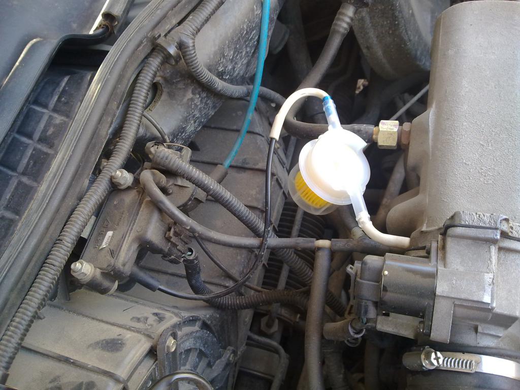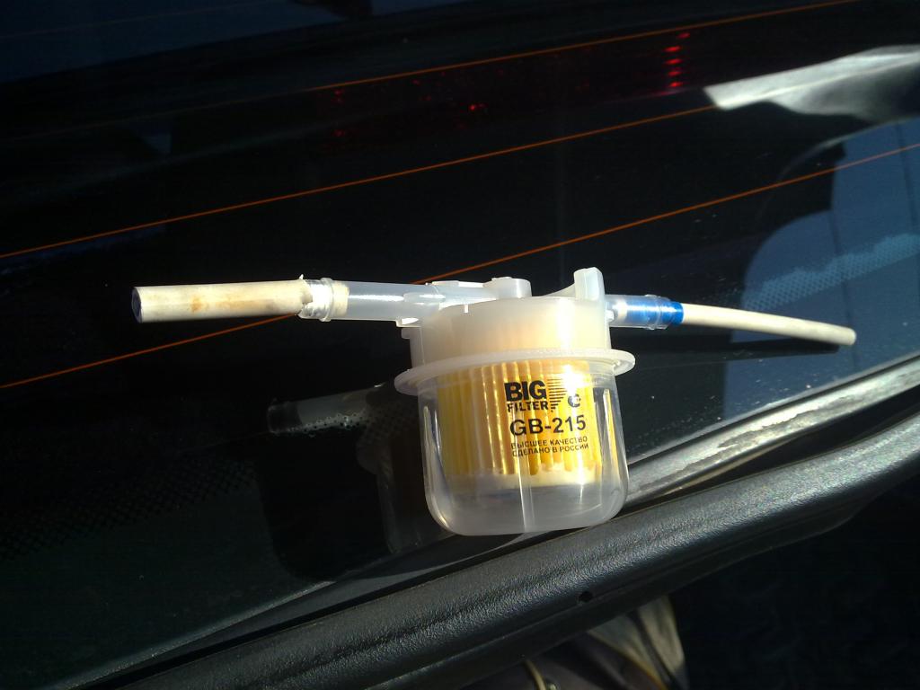 Сегодня попробовал сделать так как тут описали. Купил бензофильтр от ВАЗа. Соединительные шланги тоже можно взять от ВАЗа, в каждом автомагазе продаются такие белые, кажется для карбюратора. Посмотрите всё ли я правильно сделал? Как раз выкладываю фотки, кто то просил показать как это выглядит.
