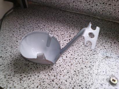 Вот и выломанный "отражатель". Беленькая стальная штамповочка, полностью закрывающая лампу в фаре и нихрена не отражающая ничего - матовая она.