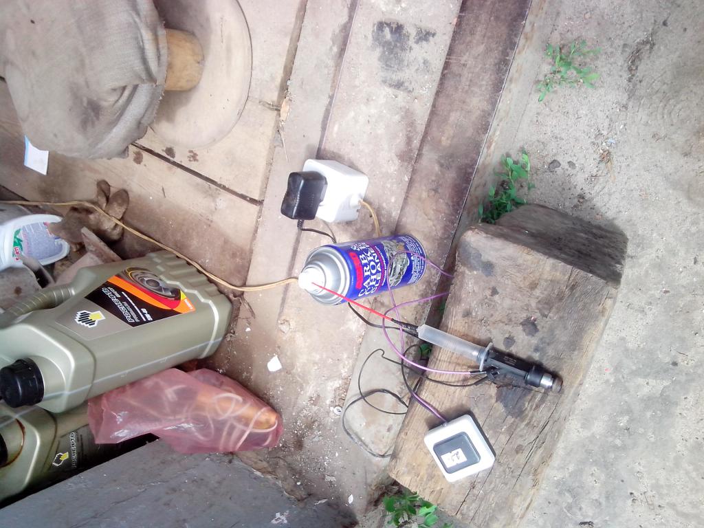 Установка: шприц 5мл, очиститель, провод, выключатель без фиксации, изолента, зарядник телефона на 9В и не кривые руки))