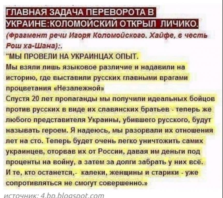 «Украинцы» безропотно позволяют себя превращать в «фарш» даже не понимая, зачем это необходимо! Удивительное и труднообъяснимое отупение плюс фантастически-поразительная безропотность! В данном случае у «украинцев» подавлены не только базовые когнитивные навыки, но даже основные инстинкты.