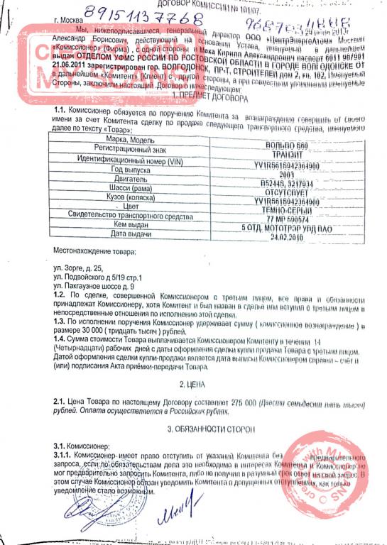 3. п. 3.1.3 не понятно как комиссионер может гарантировать юридическую чистоту если проверка на перебивку/угон и тд согласно приказа МВД N1001 от 24.11.2008 осуществляет госинспектор или иное уполномоченное должностное лицо. И самое главное, кому он гарантирует эту самую чистоту.
