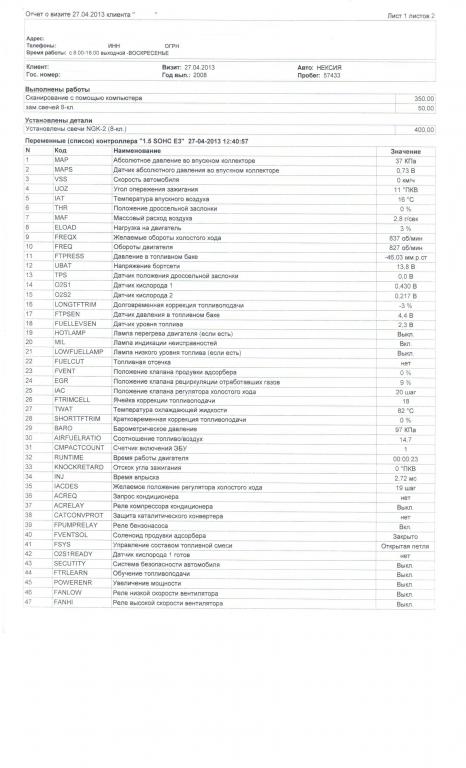 Приложение: сканы диагностики