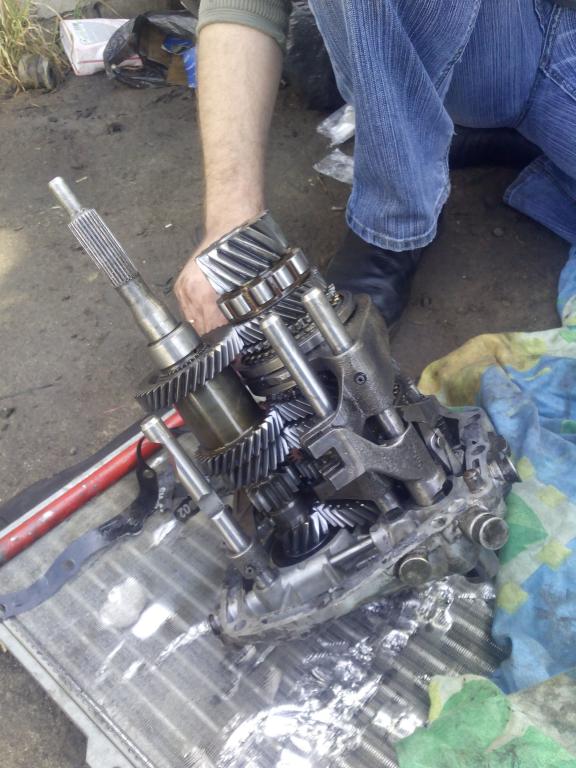 нужно снять сверху механизм выбора передач.