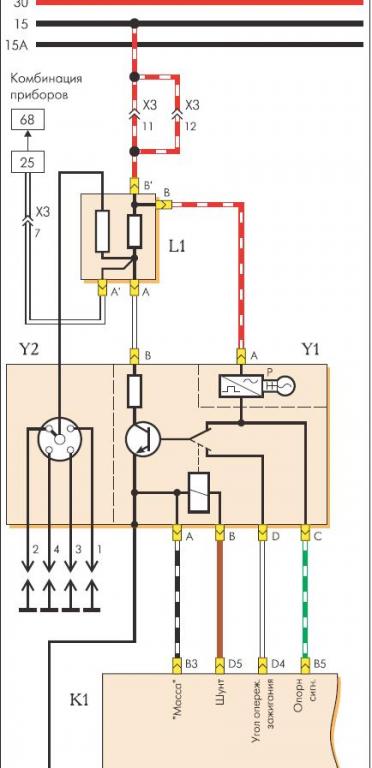 Питание шунта и есть вывод "B"на четырёхконтактном штекере коммутатора. На этот вывод должно приходить питание +5 вольт после запуска двигателя. Это включение коррекции угла опережения зажигания. До запуска двигателя, при вращении коленвала двигателя, импульсы с индукционной катушки подаются напрямую на силовую часть коммутатора, после запуска углом опережения зажигания рулит ЭБУ.