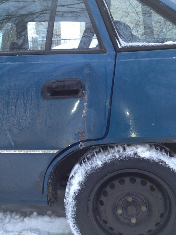 подскажите сколько может стоить такой вот ремонт ? и не обязательно же покупать новую дверь ??? колесо на ямах левое трётся о крыло ( арка колёсная погнулась немного что ли ?
