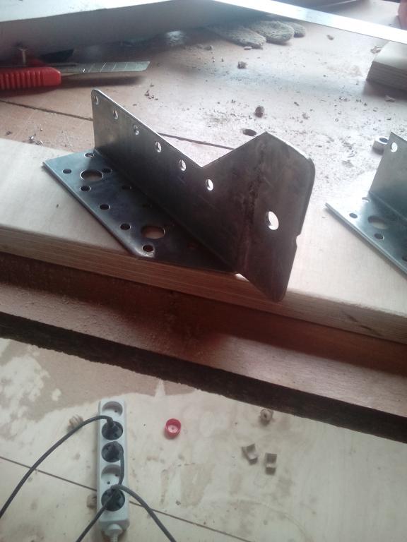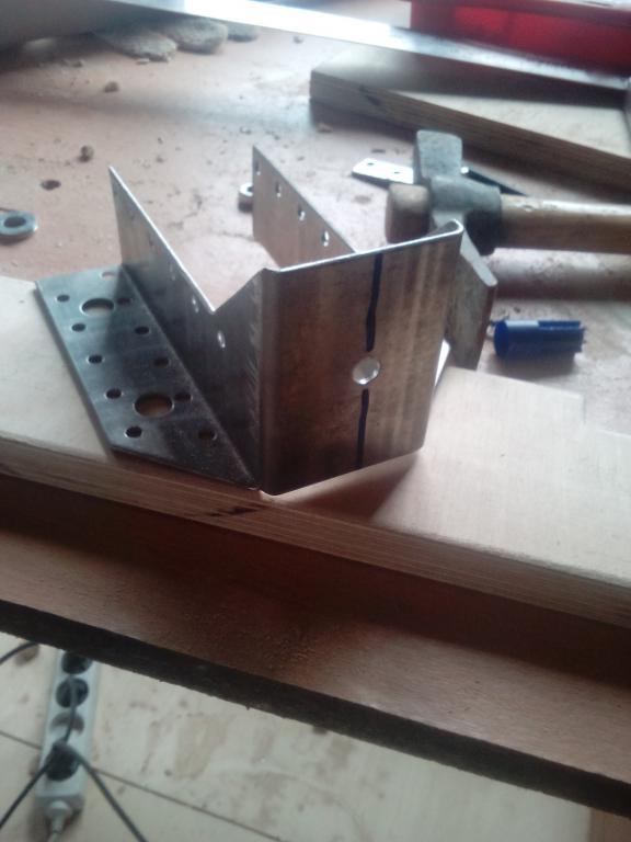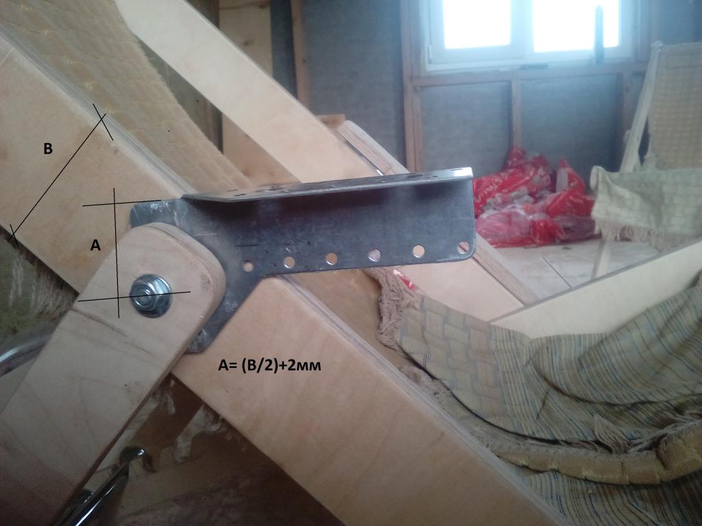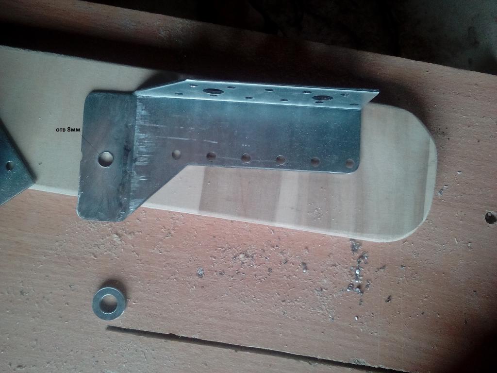 Специально для алекс04, ну и кому интересно. Вопрос с подлокотниками решил так. В голове уже было решение , но нужно было найти детали , которые бы мне подошли. Искал в ОБИ и на строительном рынке и на глаза попалась опора балки , которая используется в деревяном домостроении. И как я сразу не взял ее на вооружение, ведь дачу построил каркасную и не раз приходилось их использовать. Вот она. Линией отметил разрез (в продаже есть и готовые половинчатые опоры, я не нашел), разрезал