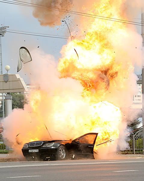 Беспредел. Среди бела дня прям напротив ГАИ мерин взорвали![]()