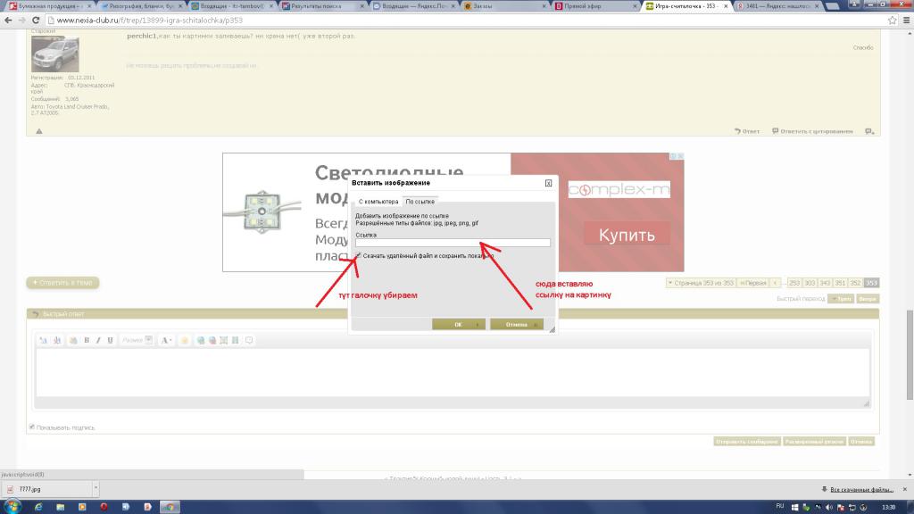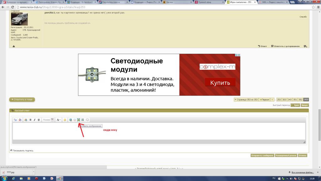 А просто нажать правой клавишей мышки и кликнуть по"копировать картинку", а в поле ответа нажать " вставить"? Реально твоих картинок не видно.