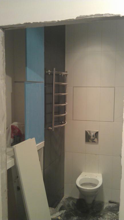 Так что вообщем как-то так пока. Сегодня начнут клеить обои. Остается только краску для обоев купить, но морозы не дают это осуществить (краска по морозу может попортиться), так что пока ждем оттепели. P.S. Плитка на полу загажена затиркой, это ее неродной цвет)))