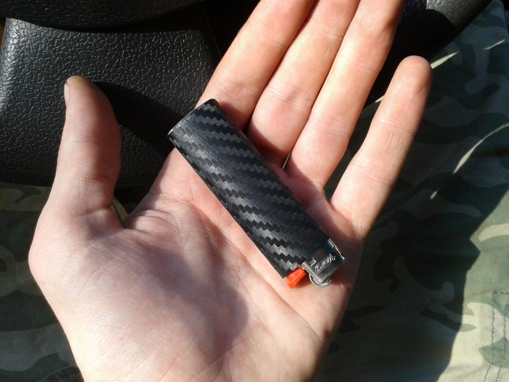 сначала поиздевался над зажигалкой ибо ни разу не клеил такую пленку и опыта нема))