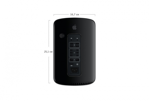 Еще одна новинка — рабочая Mac Pro, выполненная в форме цилиндра, что позволило более компактно разместить комплектующие. Устройство основано на процессоре Intel Xeon e5, количество ядер которого может достигать 12 штук. На борту имеется пара графических адаптеров AMD FirePro, SSD емкостью до 1 Тбайт с интерфейсом PCIe, порты Thunderbolt 2 и HDMI 1.4 (можно подключить до трех 4K-мониторов).