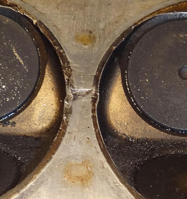 фото блока это как раз между 3 и 4 цилиндром по фото не скажешь сто секло в этом месте из за вмятины на ГБЦ....